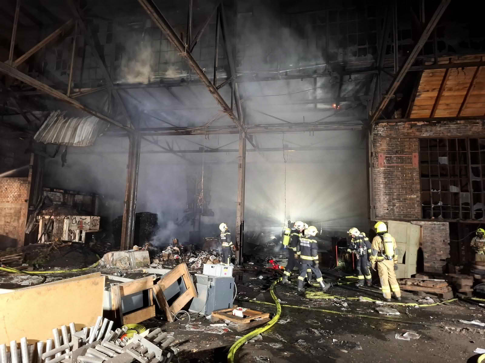 „Die Nachlöscharbeiten werden jedoch noch mehrere Stunden andauern, da das Brandgut in der Halle aufwendig zerteilt und gezielt abgelöscht werden muss.“ So Branddirektor Christian Pfeifer von der FF Wiener Neustadt.