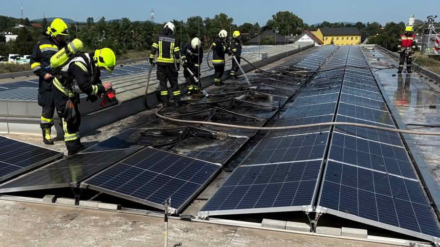 Am Donnerstag, 7.August 2025 geriet aus bislang unbekannter Ursache eine gewerbliche PV-Anlage auf einem Flachdach einer Logistikhalle eines Paketzustellers in der Blätterstraße in Steinabrückl in Brand, worauf hin der Feuerwehrnotruf abgesetzt wurde.