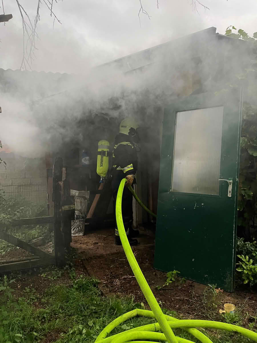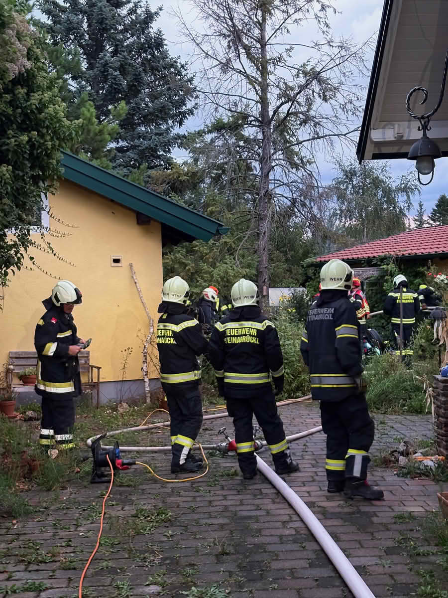 Am Dienstag, 2. September 2025 geriet aus bislang unbekannter Ursache eine Sauna in einem Nebengebäude eines Wohnhauses in der Wassergasse, nicht weit entfernt von unserem Feuerwehrhaus Brand. Gleichzeitig mit dem Absetzen des telefonischen Feuerwehrnotrufes wurde auch der Druckknopfmelder für die Feuerwehrsirene am Feuerwehrhaus betätigt.