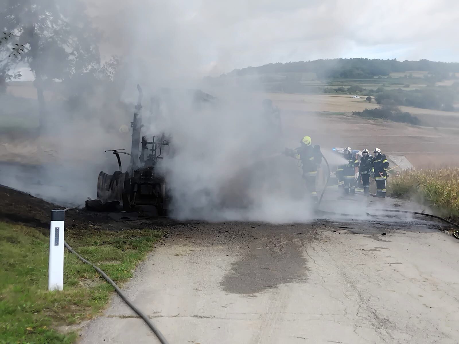 Traktor mit Güllefass ausgebrannt │ © FF Statzendorf