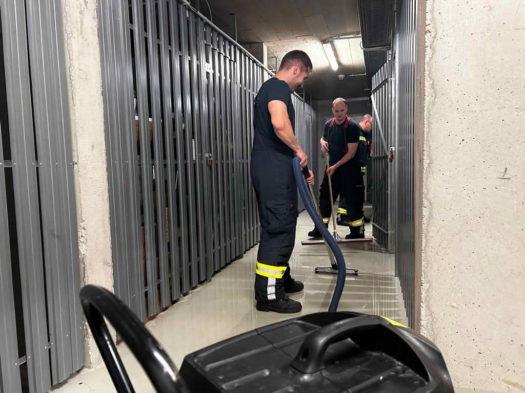 Am späten Abend wurde bei Renovierungsarbeiten in einer Wohnung eines Seniorenwohnhauses ein Wasserrohr angebohrt, wobei das ausgetretene Wasser einen massiven Schaden über 2 Stockwerke und Keller verursachte.