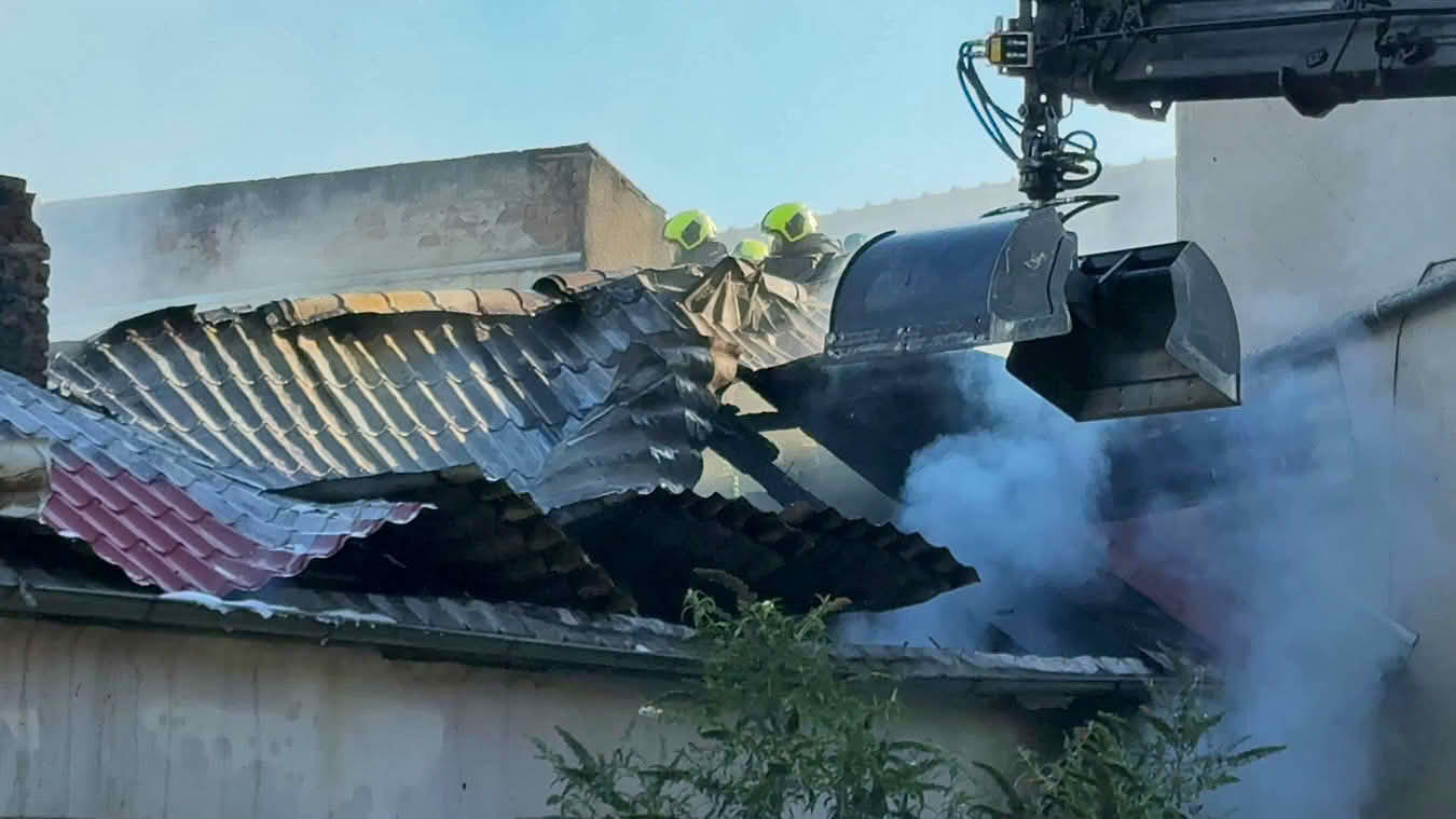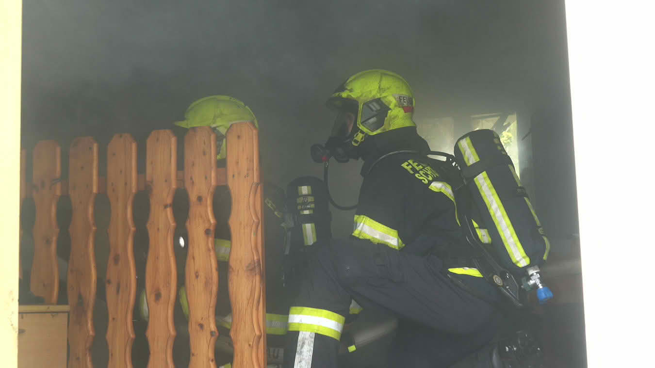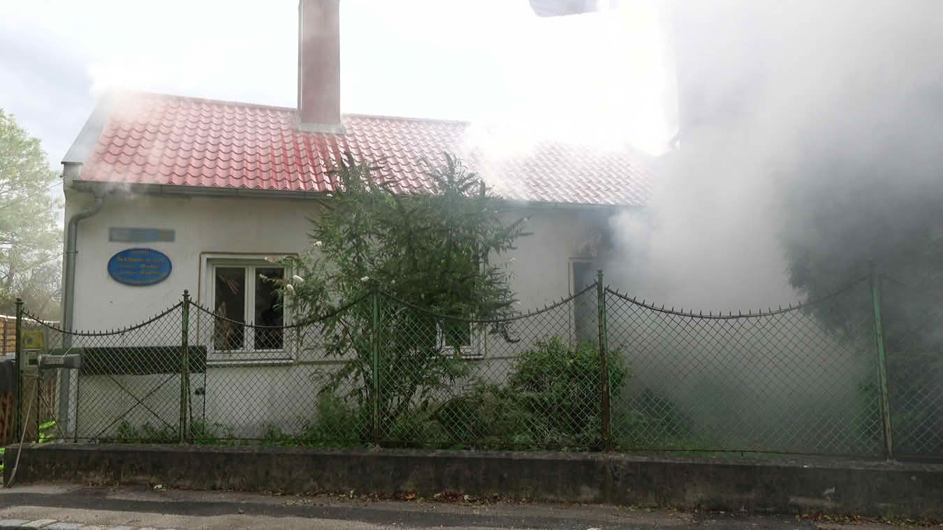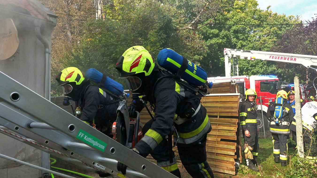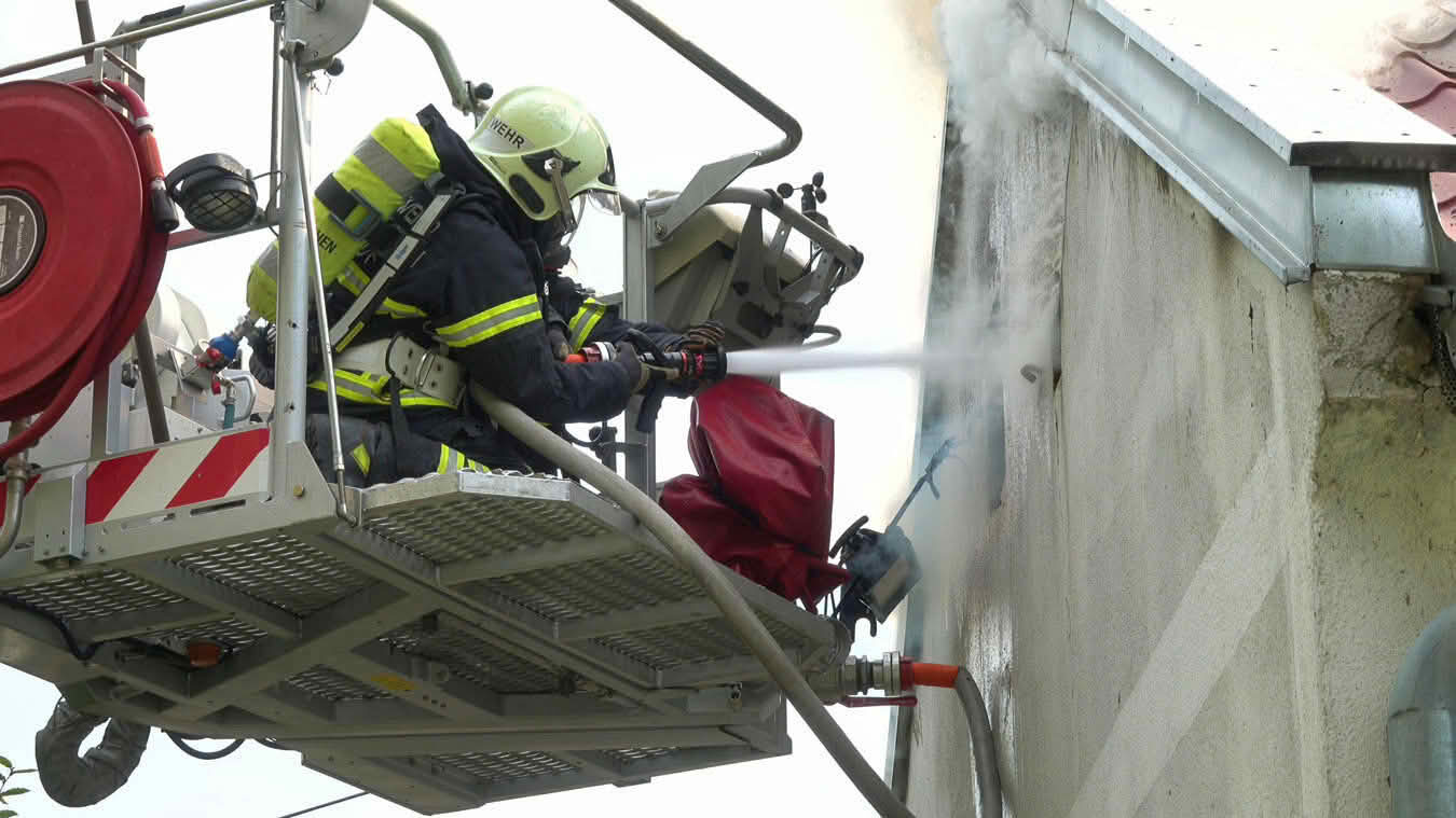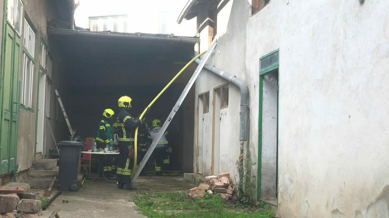 Die Schwierigkeit dabei war jedoch ins Innere des betroffenen Dachstuhls vorzudringen, da die Dachdeckung nicht aus herkömmlichen Dachziegeln bestand, sondern aus Metall-Platten in Ziegeloptik. Da diese mehrmals verschraubt waren, mussten zum Öffnen der Dachhaut Motortrennjäger und andere Brech- bzw. Schneidwerkzeuge eingesetzt werden.