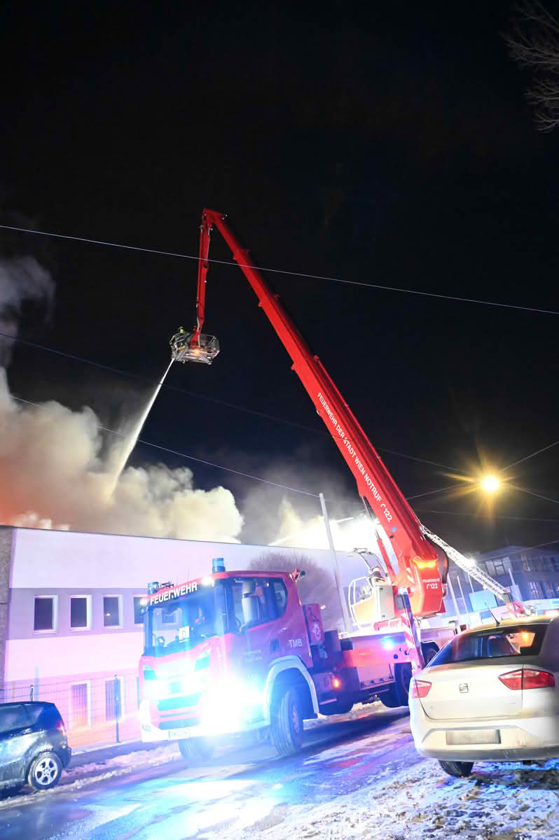 Eisige Temperaturen fordern Einsatzkräfte bei Großbrand in Wiener Gewerbebetrieb