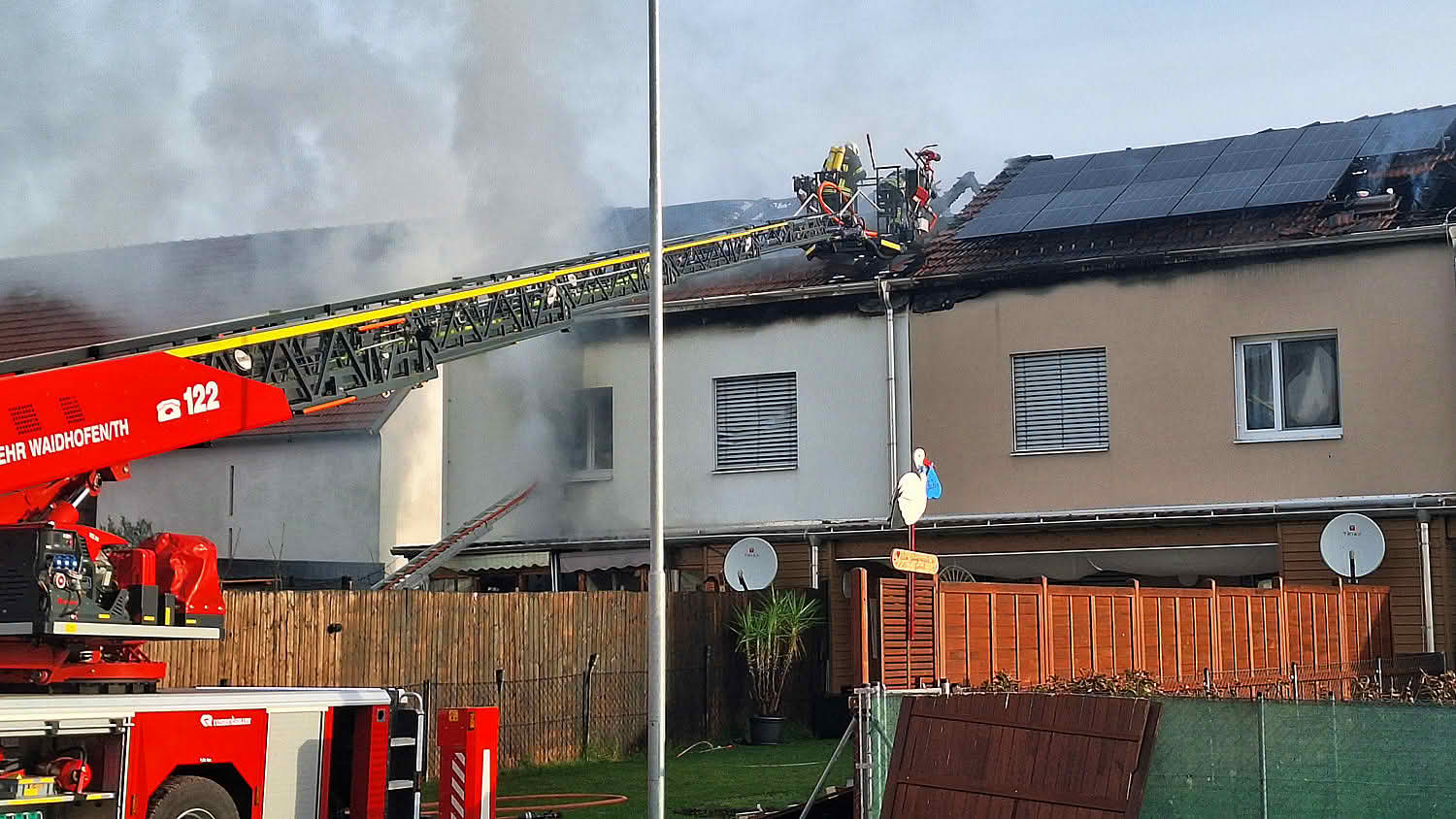 Ein Reihenhaus einer Wohnhausanlage stand beim Eintreffen der Löschmannschaften bereits in Vollbrand, auch das benachbarte Haus stand bereits in Flammen. Die drei Familien – fünf Erwachsene, vier Kinder und ein zwei Monate altes Baby – konnten sich rechtzeitig ins Freie retten. Über den Verbleib von sechs Katzen, welche in der Brandwohnung lebten, herrscht derzeit Ungewissheit.