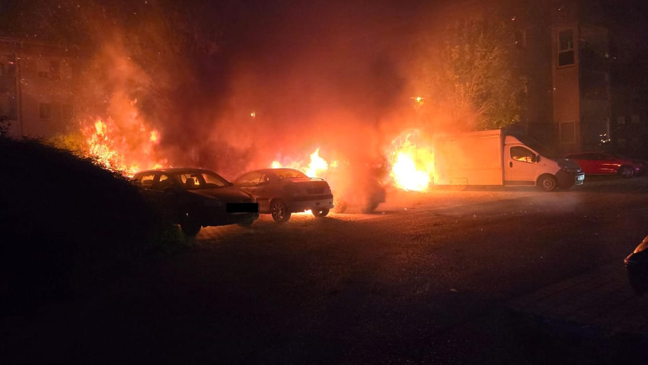 Auch die angrenzende Böschung stand schon in Brand. Zwei Atemschutztrupps bekämpften den ausgedehnten Brand mittels HD-Rohr und Schaumschnellangriff. Nach kurzer Zeit konnte „Brand unter Kontrolle“ gemeldet und mit den Nachlöscharbeiten begonnen werden. Kurz nach „Brand aus!“ traf die Brandursachenermittlung am Einsatzort ein – die tatsächliche Brandursache ist Gegenstand der Ermittlung und derzeit noch unbekannt. An den fĂĽnf Fahrzeugen entstand erheblicher Sachschaden, Personen wurden glĂĽcklicherweise keine verletzt.