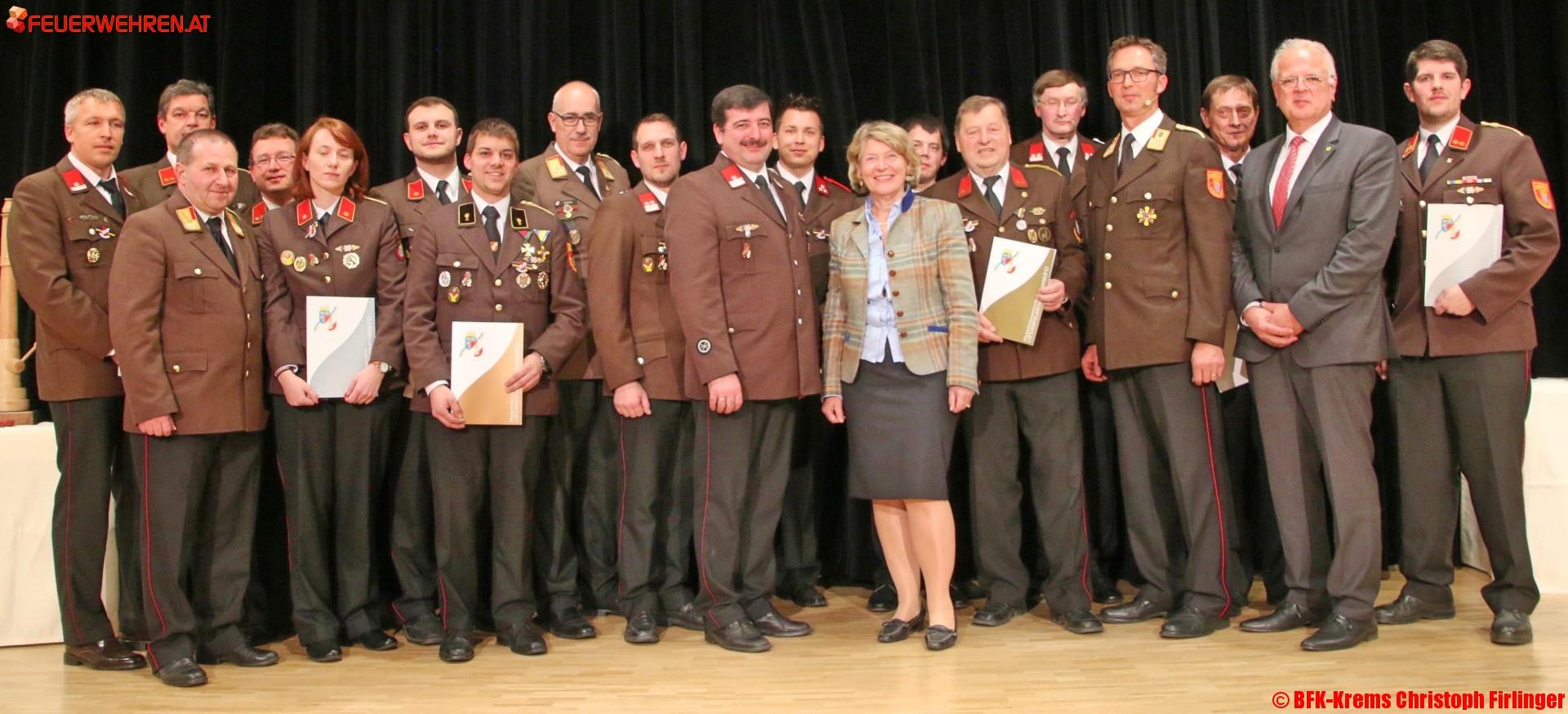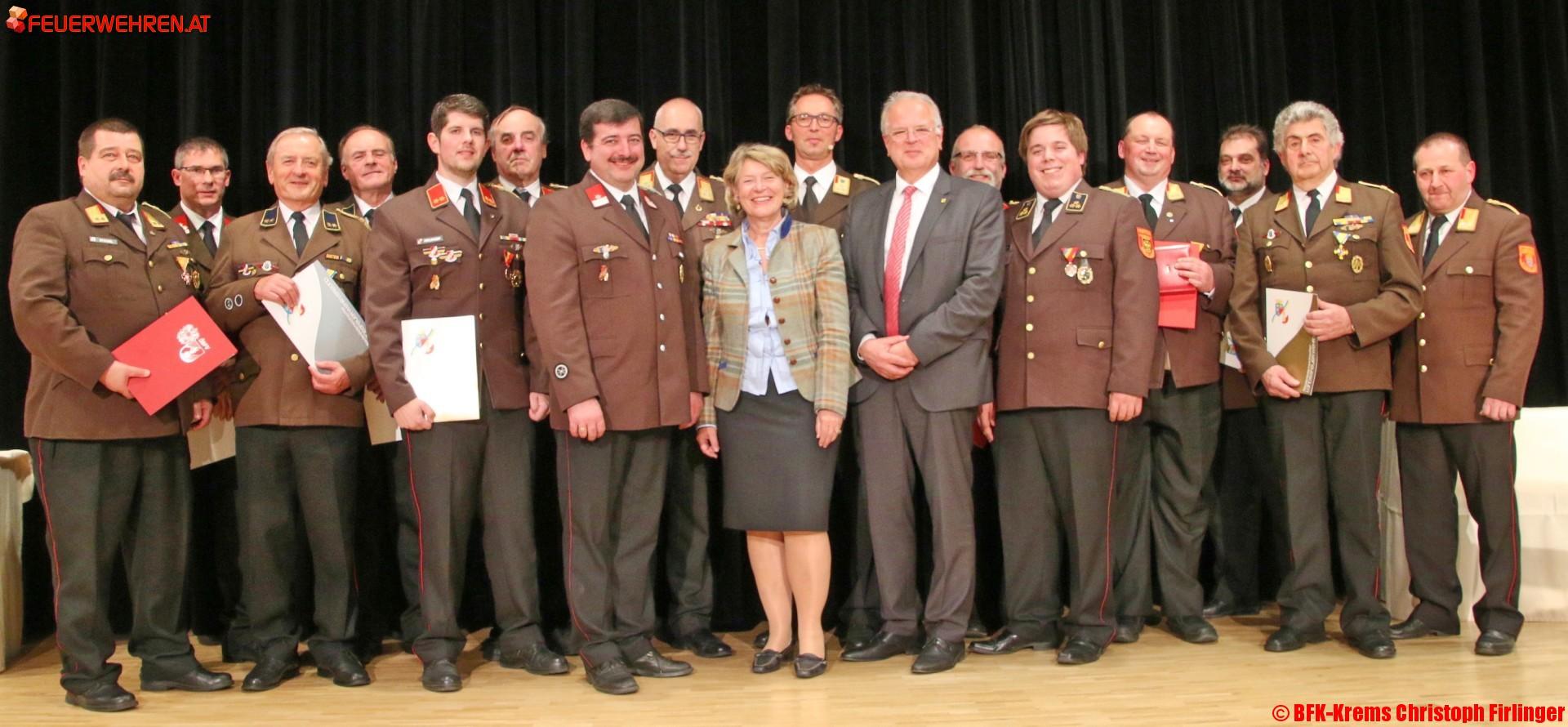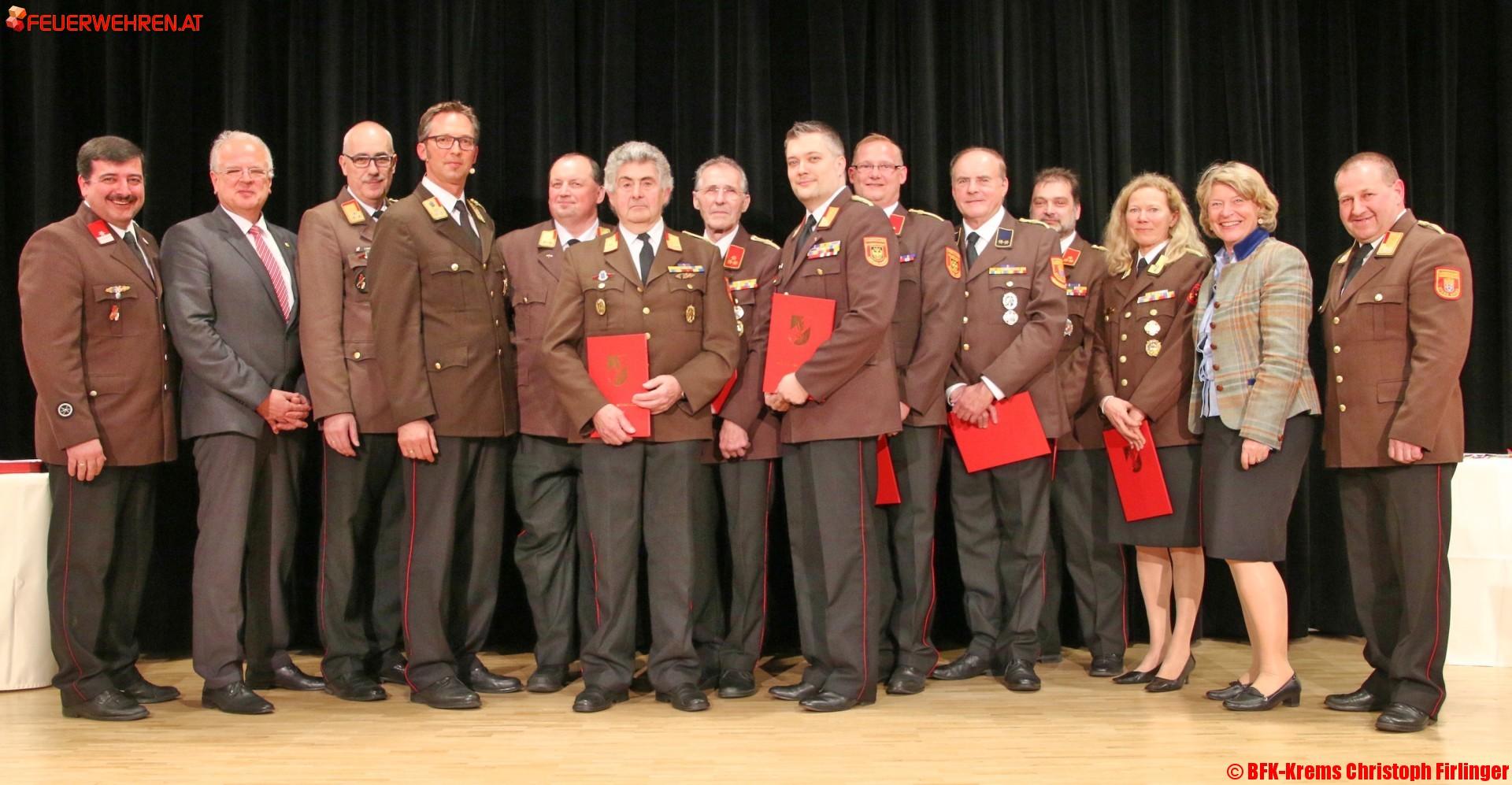 Ein besonderer Dank gilt den Feuerwehrmitgliedern, welche aus ihren langjährigen Funktionen im Bezirksfeuerwehrkommando Krems verabschiedet wurden. Folgenden Kameraden wurde eine „Dank und Annerkennung“ Urkunde überreicht:
