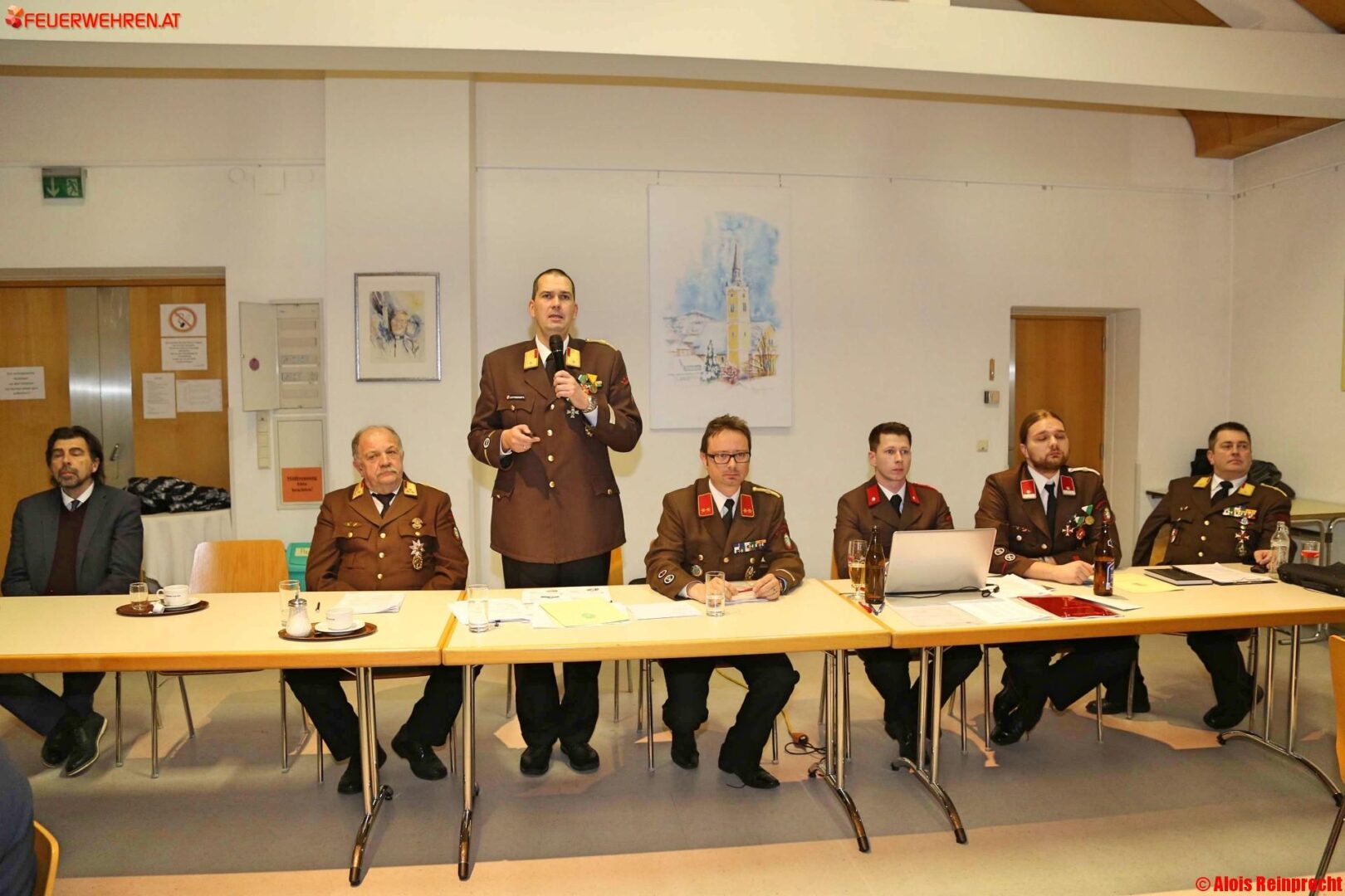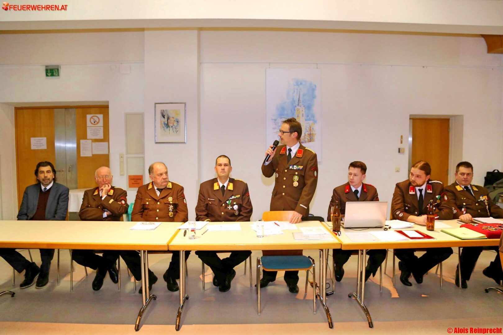 Nach der Feststellung der Beschlussfähigkeit und dem traditionellen Gedenken an die verstorbenen Kameraden folgten die Berichte des Kommandanten und seines Stellvertreters. ABI Lichtenegger konnte über ein ereignisreiches Jahr 2017 berichten, dass mit 317 Einsätzen bei mehr als 18.000 geleisteten Mannschaftsstunden zu einem der einsatzstärksten der vergangenen Jahre zu zählen ist. Erfreuliches war auch aus dem Mannschaftsstand zu berichten, wo mit 10 Neuaufnahmen (drei Jugend, fünf Quereinsteiger, zwei Zweitfeuerwehr) eine äußerst positive Entwicklung verzeichnet werden konnte. OBI Klemen fasste in seinem Bericht die besonders erwähnenswerten Einsätze, mehrere Großbrände sowie die beiden Starkwetterereignisse im August und im Dezember, noch einmal zusammen. Weiter berichtete er über den aktuellen Stand zur Beschaffung des Mehrzweckfahrzeuges Ford RANGER sowie über den Status des geplanten Um- und Zubaus des Feuerwehreinsatzzentrums Deutschlandsberg. Es folgten der Bericht des Kassiers mit anschließendem Bericht der Rechnungsprüfer sowie die Berichte der fast vollständig anwesenden Ämterführer aus ihren Sachgebieten.