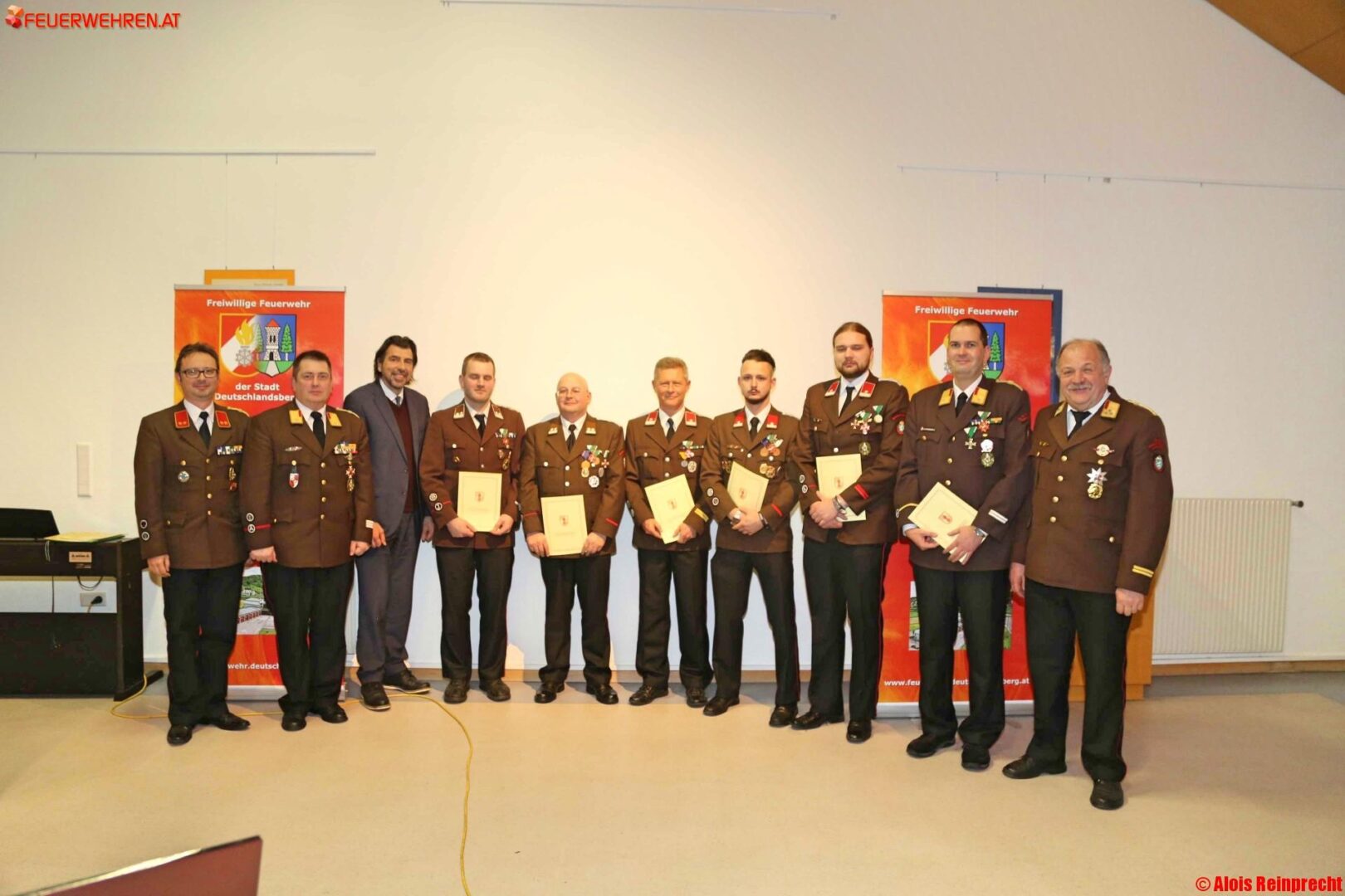 Am Freitag den 2. Februar 2018 fand im Pfarrheim Deutschlandsberg die 145. ordentliche Wehrversammlung der Freiwilligen Feuerwehr Deutschlandsberg statt. Den beiden Kommandanten ABI Gerald Lichtenegger und OBI Thomas Klemen war es eine große Ehre Bürgermeister Mag. Josef Wallner als obersten Vertreter der Stadtgemeinde Deutschlandsberg sowie den „Hausherren“ Stadtpfarrer und Feuerwehrkurat Mag. Istvan Hollo willkommen zu heißen. Seitens des Bereichsfeuerwehrverbandes Deutschlandsberg konnten der alte und neue Bereichsfeuerwehrkommandanten OBR Helmut Lanz und der zuständige Kommandant des Abschnitts Deutschlandsberg, ABI Karl-Heinz Hörgl, begrüßt werden. Aus dem Kreis der weiteren Feuerwehren in der Gemeinde Deutschlandsberg waren die Kommandanten der FF Bad Gams, HBI Ernst Größbauer, und der BtF EPCOS OHG, HBI Thomas Draxler, unter den Gästen. Von den befreundeten Einsatzorganisationen waren für die Polizeiinspektion Deutschlandsberg Kontrollinspektor Gerd Zenz und für das Rote Kreuz Abteilungskommandant Gerhard Fürpass der Einladung gefolgt. Stellvertretend für alle Ehrendienstgrade konnte der langjährige Bezirksfeuerwehrkommandant und Ehrenlandesfeuerwehrrat Alfred Smolana begrüßt werden.