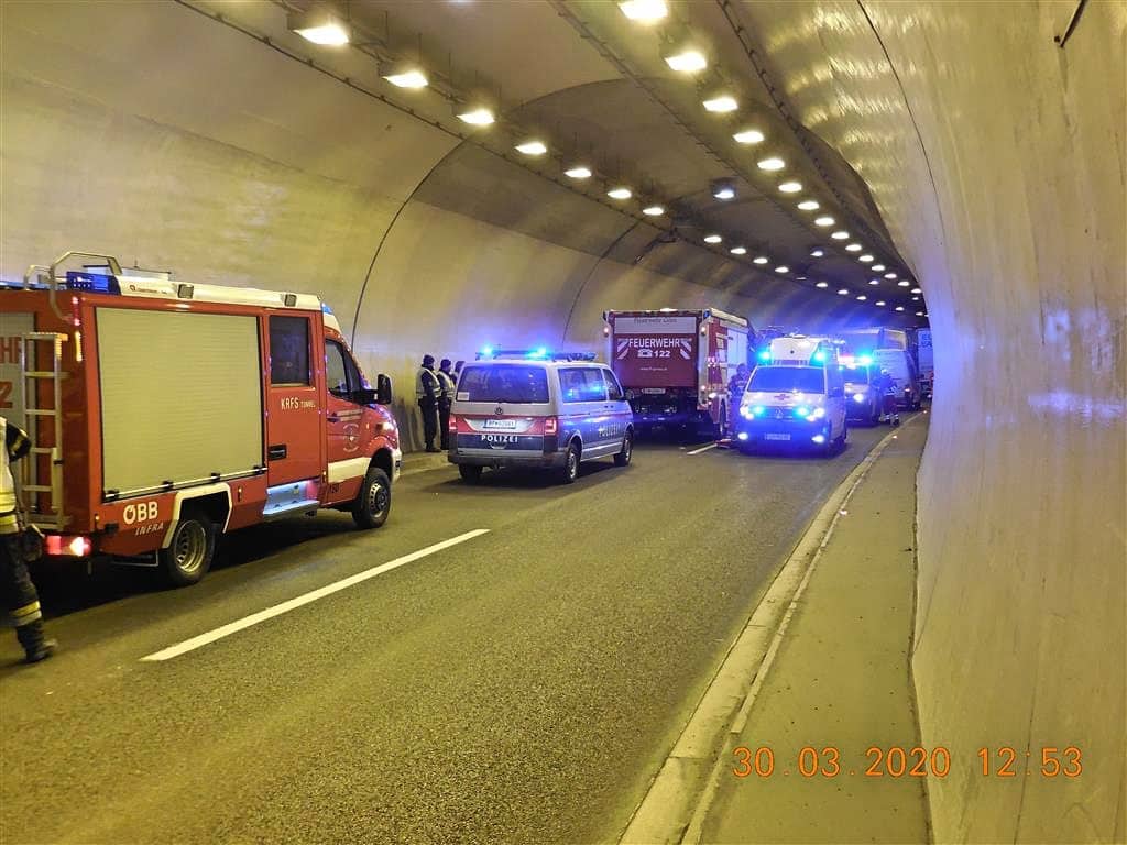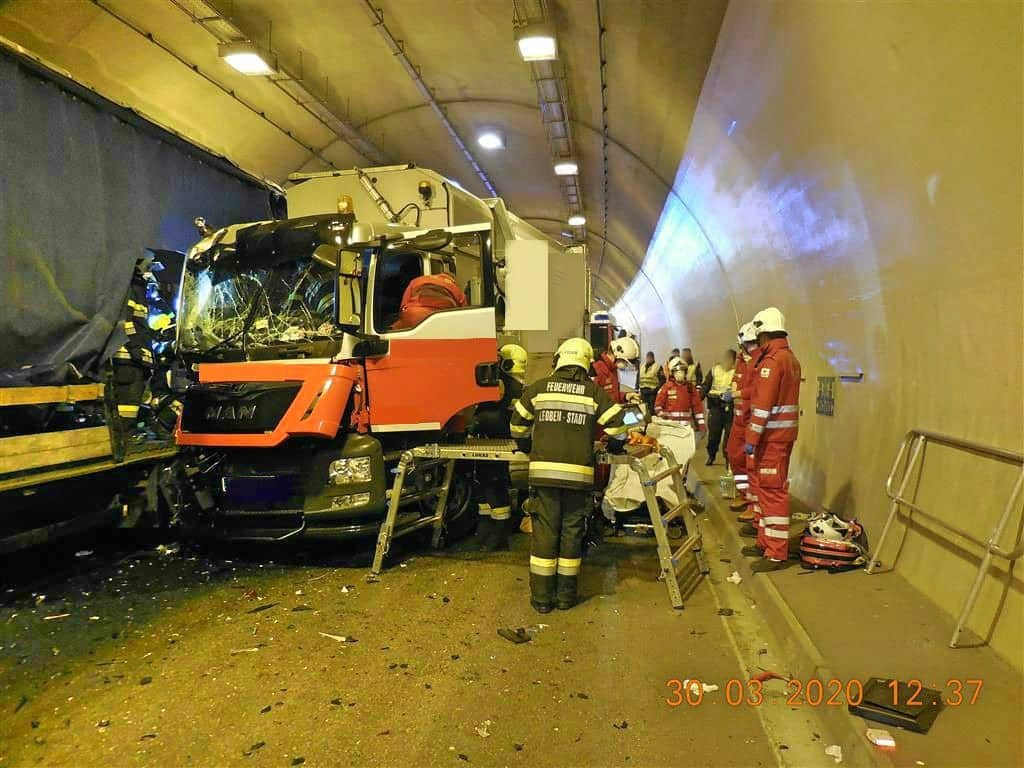 Am 30.03.2020 um 12:35 Uhr alarmierte die Bereichsfunkleitstelle Florian Leoben die Freiwillige Feuerwehr Leoben-Stadt und die Freiwillige Feuerwehr Leoben-Göß mit dem Alarmstichwort „T03-VU-Berg“ zu einem Auffahrunfall zweier LKW im Massenbergtunnel S6. Aus unbekannter Ursache kollidierten zwei LKW im Massenbergtunnel, wobei ein Fahrer im Führerhaus eingeklemmt wurde.