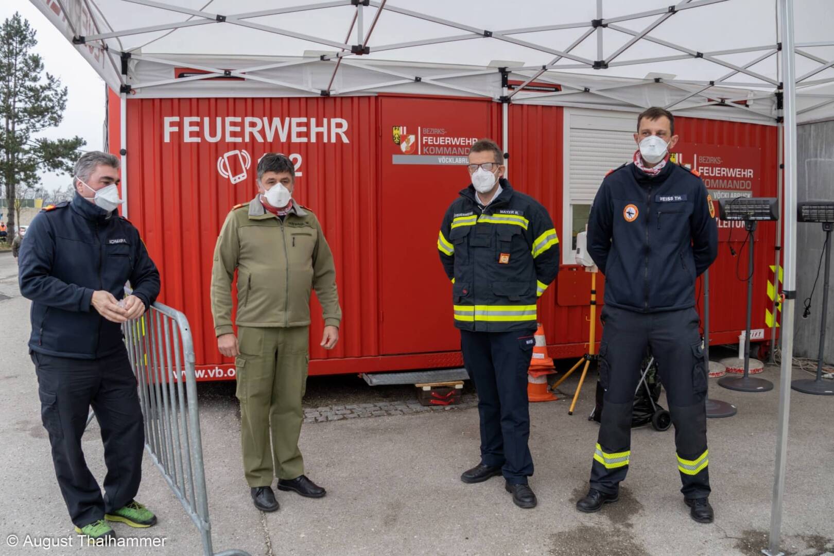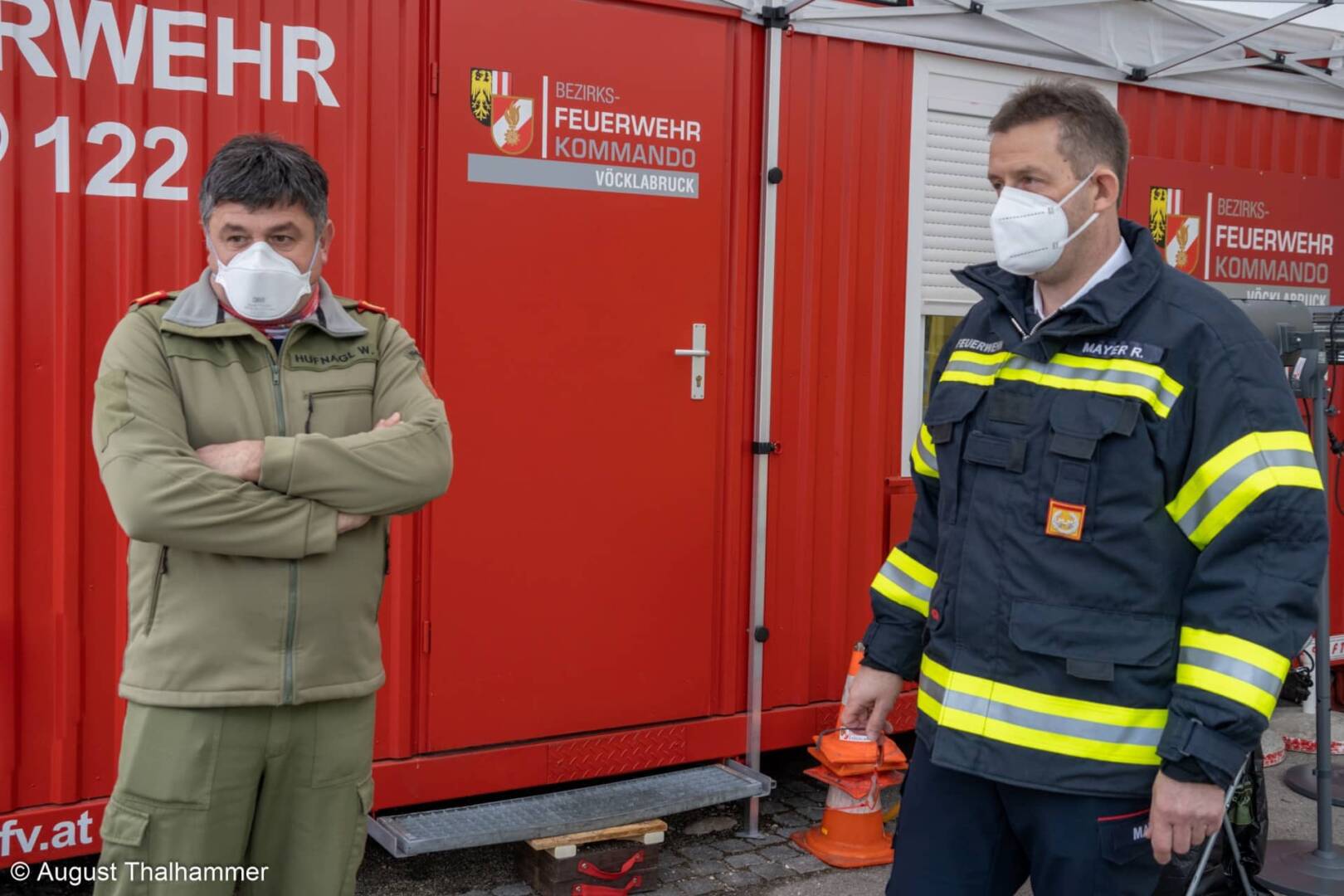 Der Landesfeuerkommandant Robert Mayer Msc. besuchte mit Bezirksfeuerwehrkommandant Wolfgang Hufnagl am Samstag die Teststraßen in Attnang-Puchheim und Vöcklabruck. Zusätzlich muss natürlich der Regelbetrieb in den Feuerwehren aufrecht erhalten werden.
