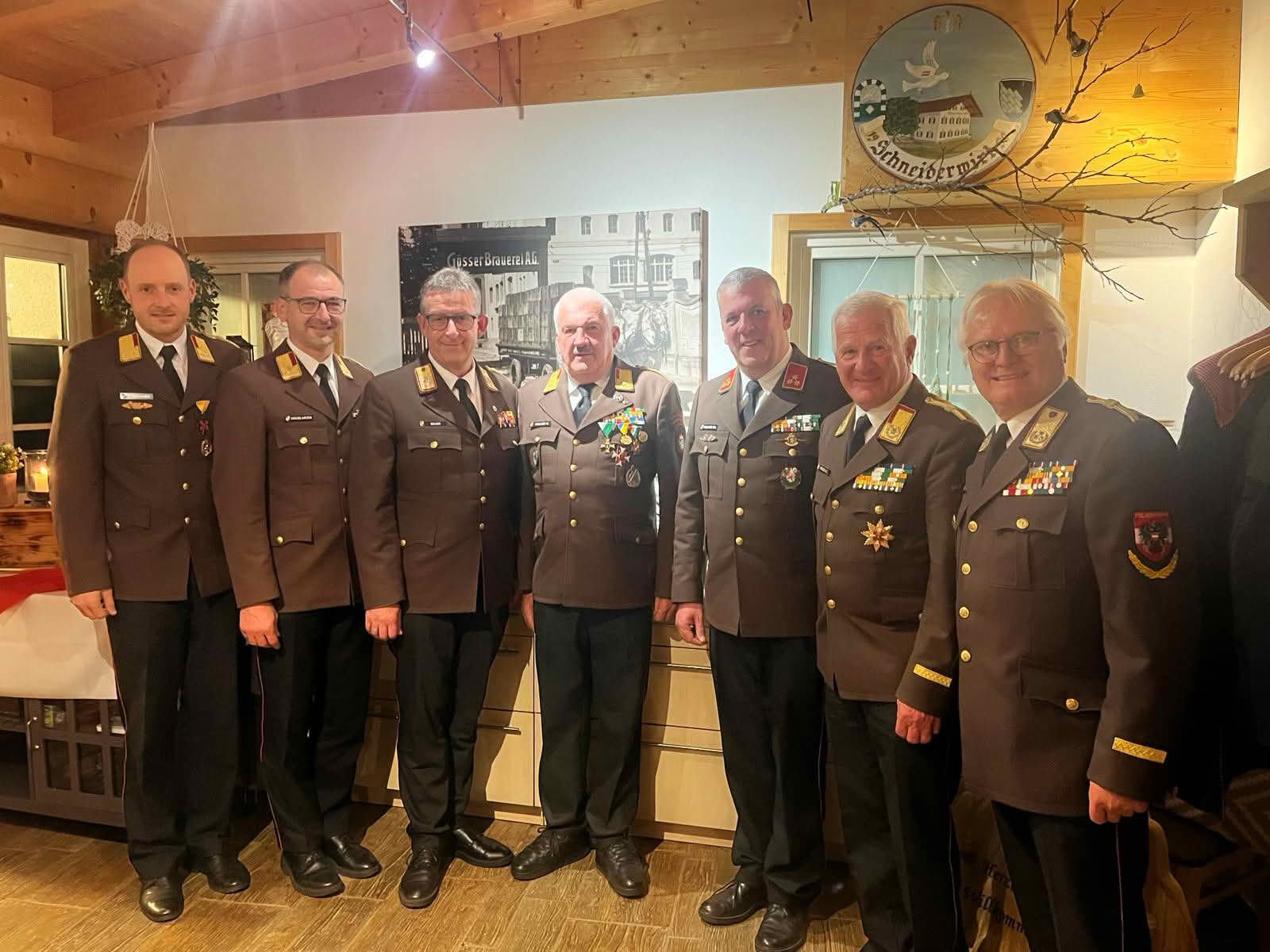 Nach der Wahl ging es zum Schneiderwirt, wo der scheidende ABI Werner Fischer zu einer Abschiedsfeier geladen hat. Hier waren viele hochrangige Feuerwehroffiziere, wie der Präsident des österr. Bundesfeuerwehrverbandes Robert Mayer, der Ehrenpräsident Albert Kern, die ehemaligen Bezirksfeuerwehrkommandanten des Bezirkes Liezen, ELBD-Stv. Gerhard Pötsch und EOBR Heinz Hartl, der Bezirksfeuerwehrkommandant von Gmunden, OBR Thomas Dreiblmeier, der Abschnittskommandant aus Bad Ischl, BR Andreas Limbacher, von der Polizei die stellvertretende Polizeikommandantin Hauptmann Tanja Zefferer, vom Roten Kreuz Ortstellenleiter Philipp Winkler, Michael Allmer und Martin Mayer, die Einsatzleiter der Bergrettung Ausseerland Markus Raich, sowie Georg Holzer, und seitens der Salinenmusikkapelle Robert Leu. Viele würdigten die umfassende Tätigkeit von ABI Werner Fischer im Rahmen seiner Feuerwehrtätigkeit und wünschten dem neuen ABI Christian Fischer viel Erfolg für die Zukunft.