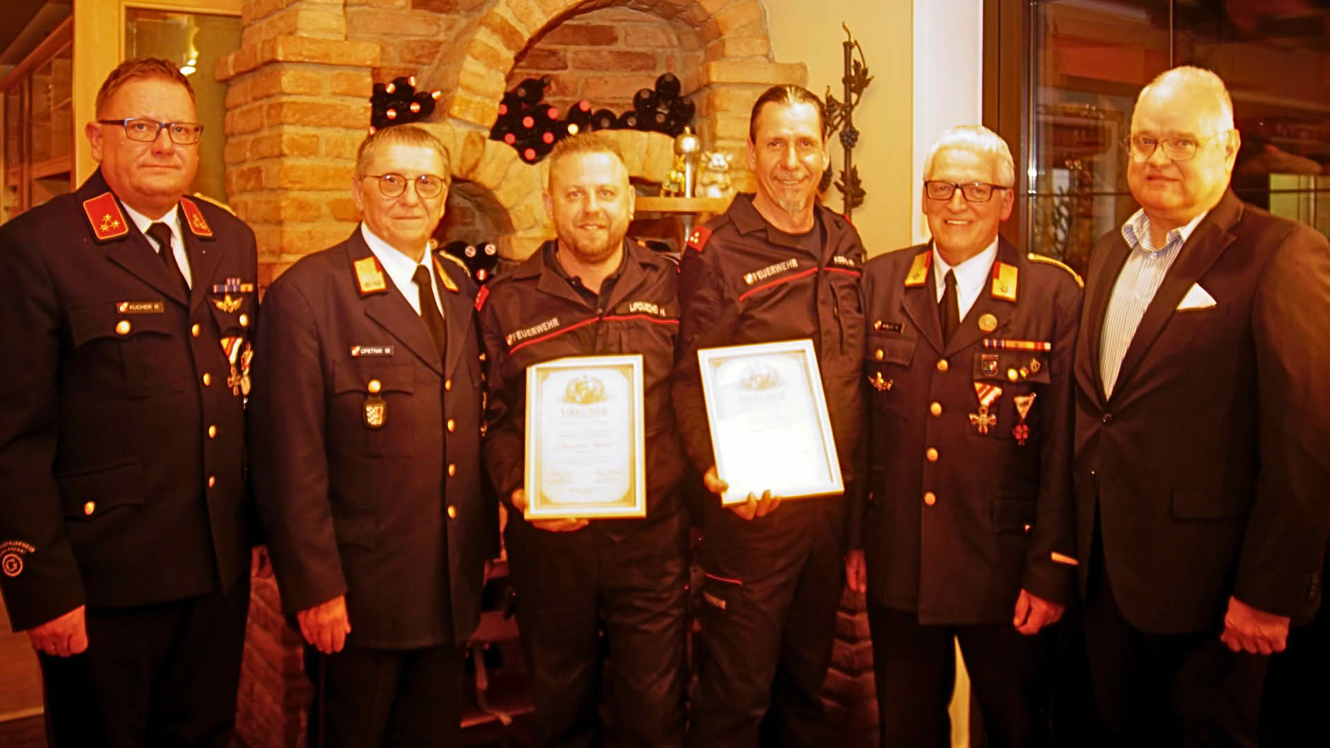 Ein würdiger Programmpunkt war die Auszeichnung der scheidenden Kommandantschaft der Feuerwehr Kühnsdorf. Michael Kodal und Herbert Lipouschek wurden für ihre langjährige und verdienstvolle Tätigkeit geehrt und mit Dank und Anerkennung für ihren Einsatz im Dienste der Feuerwehr ausgezeichnet.