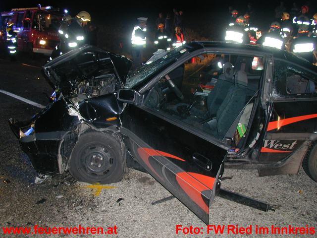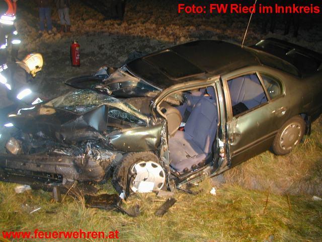 Am 31.10.2003 um 17.05 Uhr ereignete sich auf der Peterskirchner Straße im Gemeindegebiet Peterskirchen, Bez. Ried i.I. ein folgenschwerer Verkehrsunfall. Der 19-jährige Lenker eines Nissan geriet in einer langgezogenen Rechskurve ins Schleudern und stieß in der Folge frontal gegen einen entgegenkommenden Nissan Primera, der von einer 44-jährigen Frau gelenkt wurde.