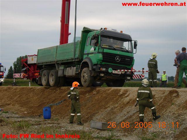 Eingesetzte Mannschaft und Gerät der FF Ried: 5 Mann, Kran, Last 1.