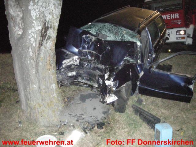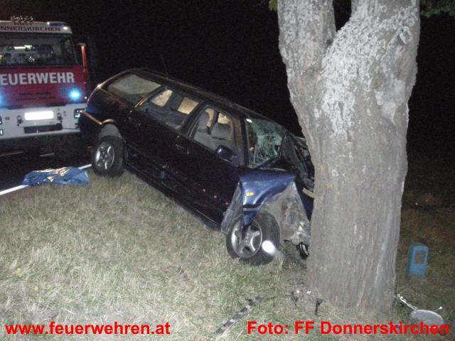 Die Feuerwehr Donnerskirchen wurde am 2.10.2009 um 3:58 Uhr von der Feuerwehralarmzentrale mittels Sirene und Rufempfänger zu einem Verkehrsunfall auf der B50 zwischen Donnerskirchen und Schützen mit einer eingeklemmten Person alarmiert. Die Feuerwehr Donnerskirchen rückte mit 3 Fahrzeugen (Rüstlöschfahrzeug, Rüstfahrzeug und Mannschaftstransportfahrzeug) und 25 Mann zum Einsatzort aus.
