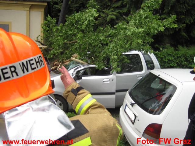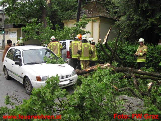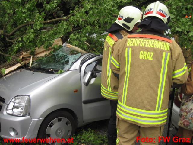 Baum stürzte auf fahrenden PKW │ © BF Graz