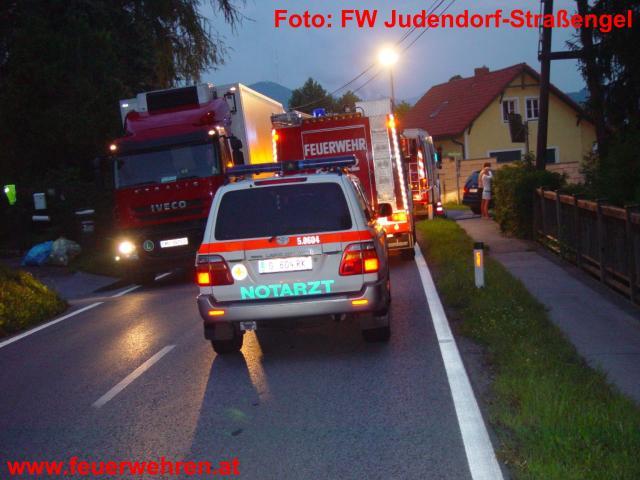 Die Freiwillige Feuerwehr Judendorf-Straßengel wurde um 05:25 Uhr von der Bezirksalarmzentrale Graz-Umgebung alarmiert. Um 05:30 Uhr traf das erste Fahrzeug mit dem Einsatzleiter HBI Bernhard Konrad am Einsatzort ein, der sofort die Lage erkundete. Wenige Sekunden später trafen weitere Feuerwehrkräfte mit zwei Fahrzeugen am Einsatzort ein, die sofort eine Verkehrsabsicherung, 2-fachen Brandschutz sowie eine Beleuchtung errichteten.