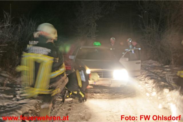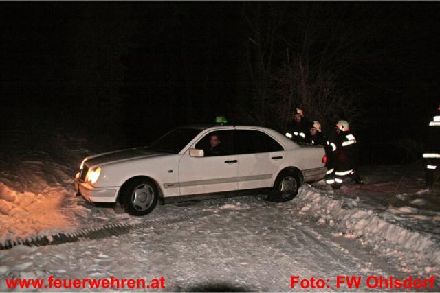 Mittels Vollalarmierung (Pager und Sirene) wurde die Feuerwehr Ohlsdorf am 05. Jänner 2011 um 23.43 Uhr zu einer Fahrzeugbergung nach Peiskam alarmiert. Ein Taxilenker kam aufgrund eines Wendemanövers mit seinem Fahrzeug in den Schnee und blieb stecken.