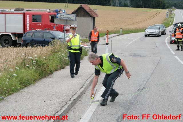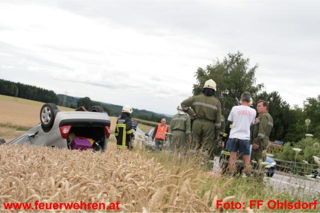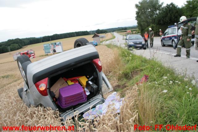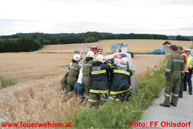 Seitens der Feuerwehr Ohlsdorf wurde der Verkehr wechselweise an der Unfallstelle vorbeigeleitet, damit die Polizei Gmunden die Unfallaufnahme durchführen konnte. Nach der Freigabe durch die Beamten wurde das Fahrzeug auf die Räder gestellt und mit der Seilwinde aus dem Feld geborgen.