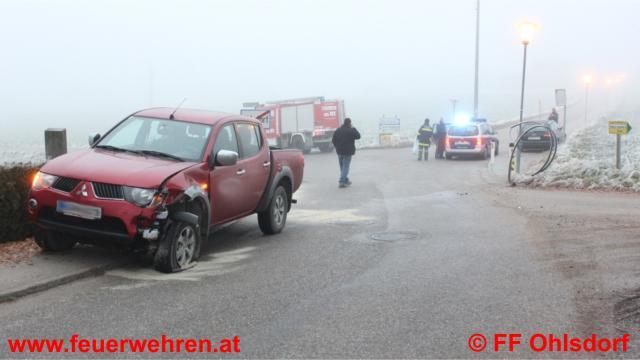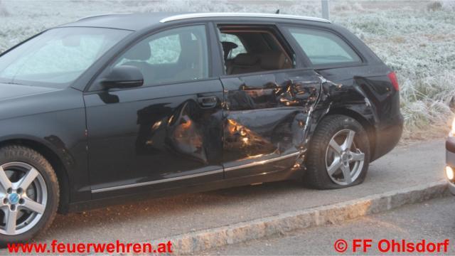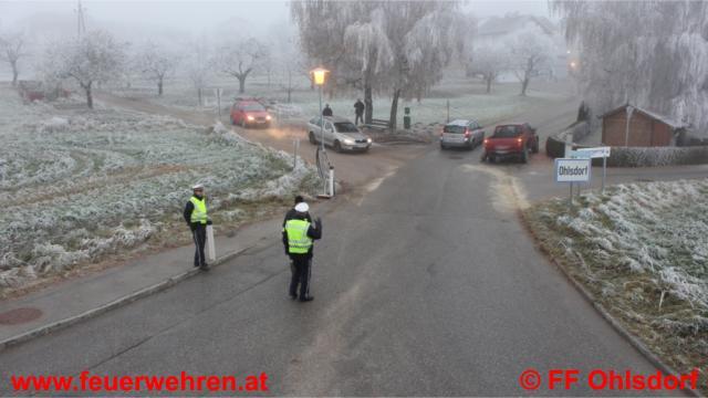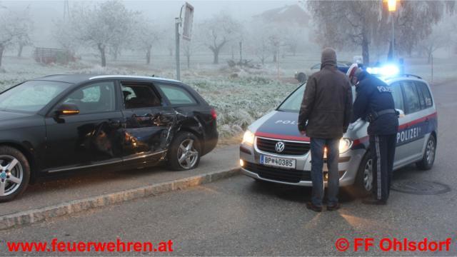 Aus unbekannter Ursache kam es am Freitag, den 25. November 2011 in den frühen Morgenstunden zu einem Verkehrsunfall in Ohlsdorf. An der Kreuzung Hochbau / Ohlsdorf kollidierten zwei Fahrzeug seitlich miteinander wobei es zum Glück nur bei Blechschäden blieb. Ein Fahrzeug konnte nach einer kleinen Reparatur vor Ort selbstständig weiterfahren, das andere Fahrzeug musste von einem Abschleppwagen abtransportiert werden.