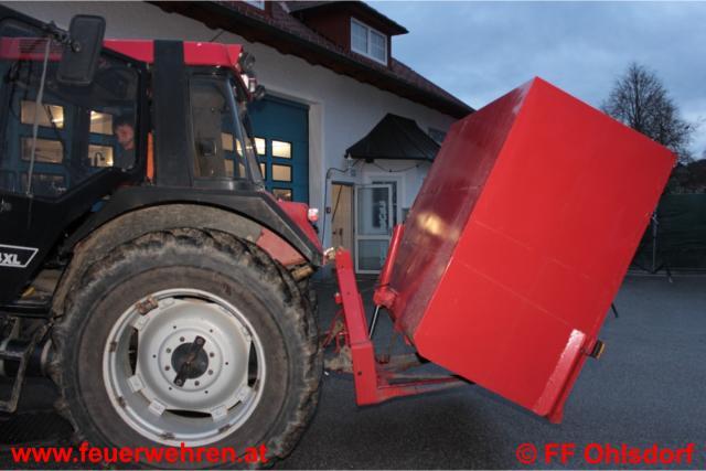 Die Gerüchteküche tobte und so hieß es, dass das Fahrzeug mit Unterstützung der Gemeinde angeschafft wurde. Dieses Gerücht möchten wir gerne ablegen, da das Fahrzeug rein aus finanziellen Mitteln der Feuerwehrkassa finanziert wurde und knapp 120 Stunden in die Aufbauarbeiten investiert wurden. Auch der Bau eines neuen Altpapiercontainers wurde in Eigenregie durchgeführt. Hierbei wurde von Kamerad Maxwald Karl eine Traktorhecklade zum Kippen umgebaut bzw. der neue Sammelcontainer aufgebaut. Hierbei wurden wiederum rund 50 Arbeitsstunden aufgewendet. Beim alten Container musste das Altpapier mühsam händisch ausgebracht werden. Nun kann diese Arbeit von einem Mann leicht erledigt werden.