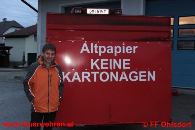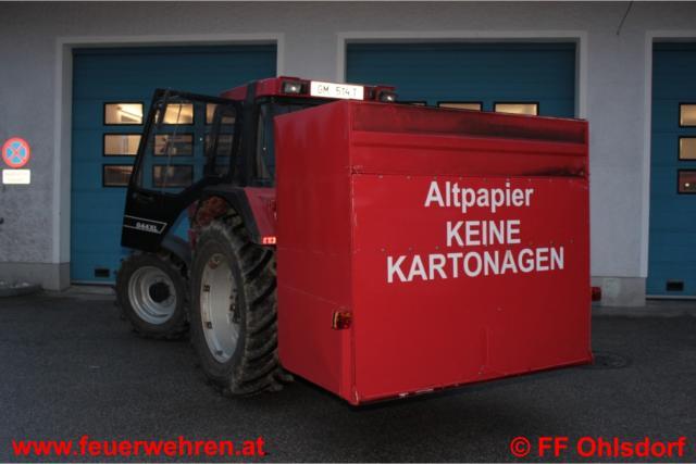 Seit mehr als 40 Jahren sammelt die Feuerwehr Ohlsdorf Altpapier, so die Aussage des ehemaligen Kommandanten E-HBI Hermann Leutgeb sen., welcher in den 70er Jahren selbst als Kommandant damit anfing Altpapier, Glas und sogar Alteisen zu sammeln. Der Gedanke daran war die Unterstützung des Umweltschutzes und stellt auch heute, 40 Jahren danach, einen großen Stellwert der Altpapiersammlung. Unzählige Kameraden halfen und helfen auch heute noch mit, um das Papier teilweise von den Häusern abzuholen bzw. den Container und Anhänger, welche beim Gerätehaus stehen auszuräumen.