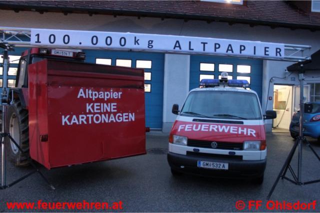 Die Feuerwehr Ohlsdorf bedankt sich bei allen Bürger/innen welche selbst das Altpapier zum Gerätehaus bringen bzw. bei denen welche es für die Feuerwehr sammeln. Auch den unzähligen Firmen, die größeren Mengen haben, sei herzlichst gedankt. Der größte Dank aber gebührt den unzähligen Helfern welche Woche für Woche ihre Freizeit für die Sammlungen aufwenden und somit wesentlich zum Umweltschutz in der Gemeinde beitragen.