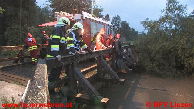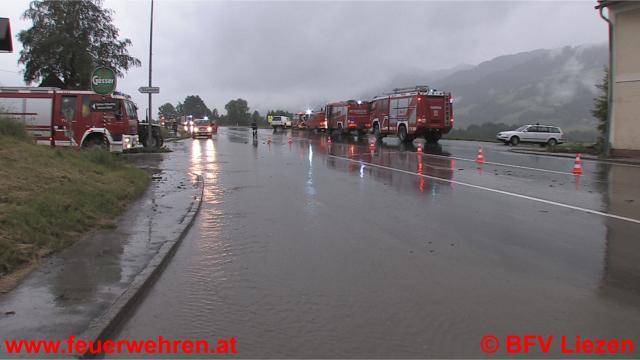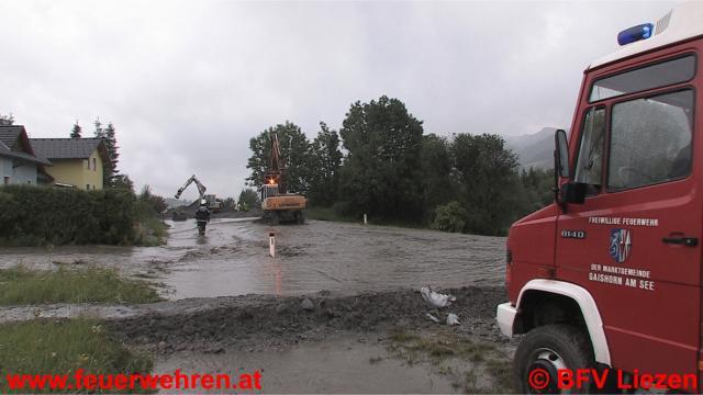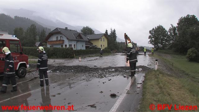 Seit 02:30 Uhr im Paltental sind die Feuerwehren weiter bei überfluteten Bächen und Murenabgängen im Einsatz (Treglwang, Gaishorn, Trieben, Dietmannsdorf, Bärndorf), in Bärndorf ist die B113 gesperrt, der Verkehr wird kleinräumig umgeleitet. Die Straße ist auf einer Länge von ca. 100 Meter überflutet.