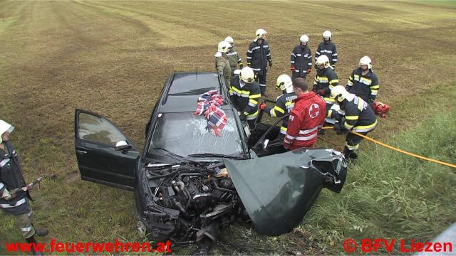 Der verletzte Lenker erlitt durch den Anprall schwere Verletzungen und wurde mit den unteren Extremitäten eingeklemmt. Deshalb wurden seitens „Florian Liezen“ zur Personenrettung die Feuerwehren Stein an der Enns, St. Martin am Grimming und Öblarn alarmiert. Der Patient wurde mittels hydraulischem Rettungsgerät durch einen Rettungstrupp der FF Stein an der Enns aus der Fahrgastzelle befreit und in weiterer Folge vom Notarztteam des Roten Kreuz aus Schladming erstversorgt, infolge ins DKH Schladming eingeliefert.