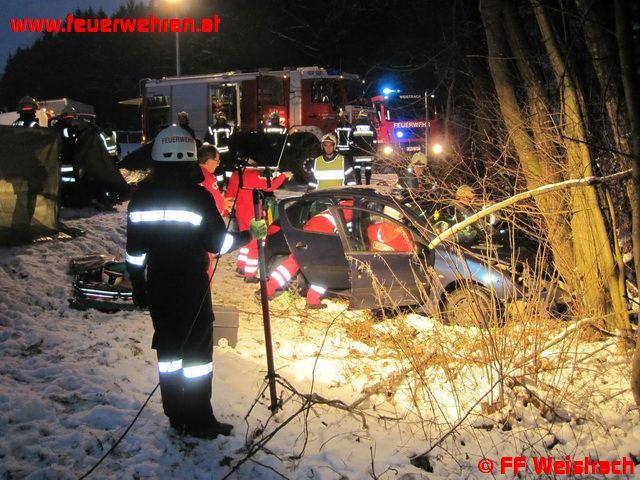 Bereits zur dritten Menschenrettung innerhalb von 16 Tagen wurde die FF Weistrach am 16.01.2013 um 07:05 Uhr neuerlich mit dem Alarmtext: „Menschenrettung (1 eingeklemmte Person) T2 für Weistrach: B 122 Km 18,2 Abzweigung Weistrach LH 85“ zum Einsatz gerufen.