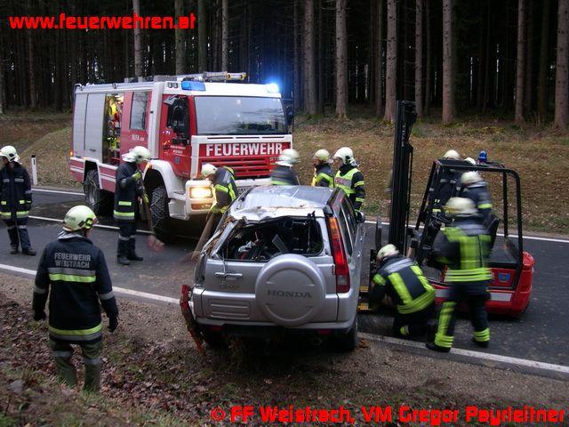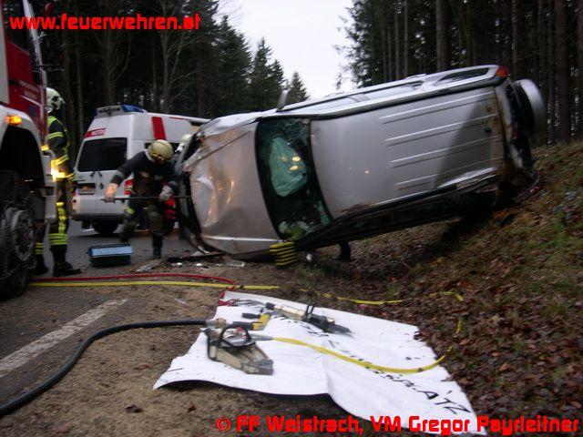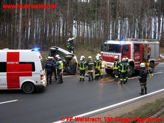 Am 03.01.2012 um 15:24 Uhr wurden die Feuerwehren Weistrach, Rohrbach und Kürnberg mittels Sirene und Pager Alarm zur Menschenrettung auf die B 122 Kilometer 20,6 gerufen. Da 4 Feuerwehrmitglieder im FF Haus Wartungsarbeiten durchführten, konnten diese sofort mit dem Rüstlöschfahrzeug ausrücken.