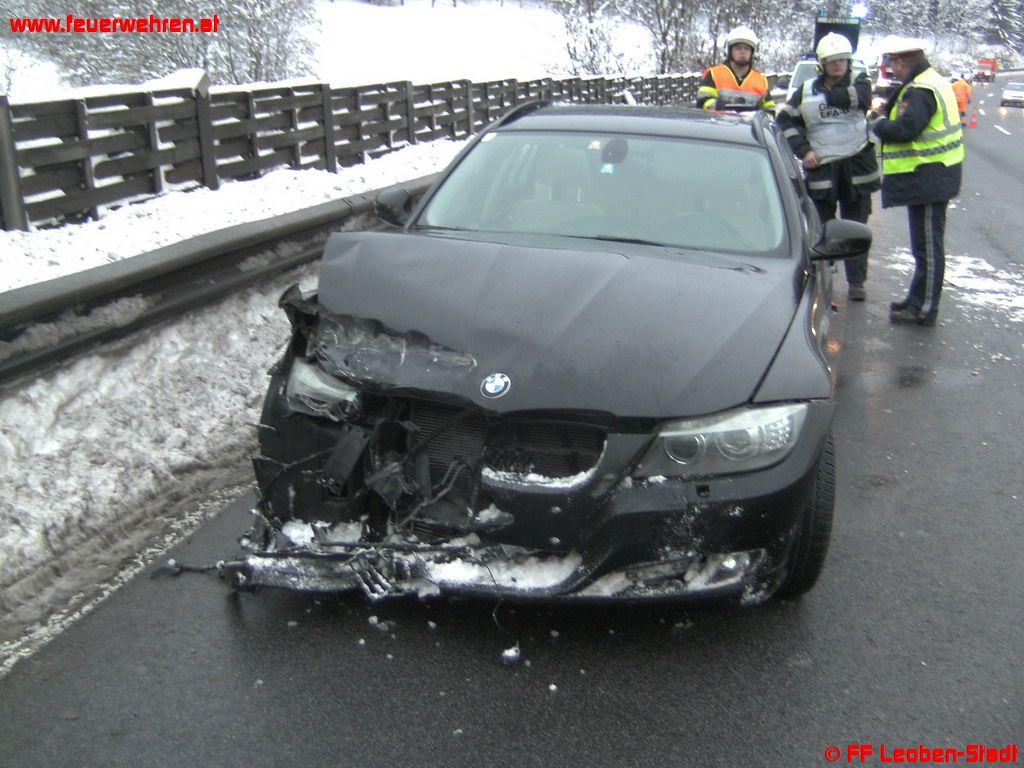 Am 18.01.2013 um 08:11 Uhr alarmierte die Bereichsfunkstation Florian Leoben die Freiwillige Feuerwehr Leoben-Stadt und die Freiwillige Feuerwehr Leoben-Göß zu einem Verkehrsunfall auf der S6 FR Bruck vor dem Massenbergtunnel. Ein PKW ist aus vorerst unbekannter Ursache gegen die Leitschiene geprallt.