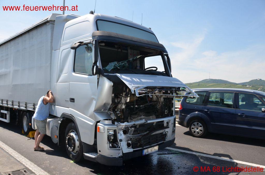 Gegen 13.30 Uhr war es auf der Nordbrücke (stadtauswärts) zu einer Massenkarambolage gekommen. Schlussendlich waren zwei Personenkraftwagen, ein Abschleppwagen, ein Sattelschlepper und ein Kastenwagen an dem Unfall beteiligt.