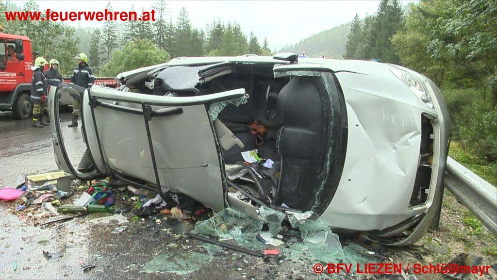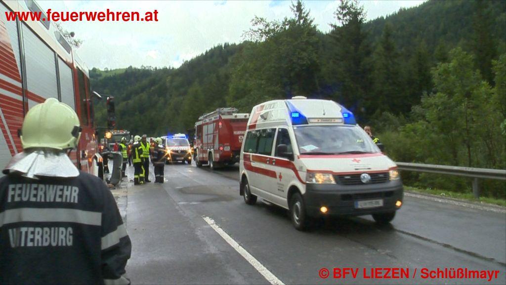 Ein äußerst tragischer Verkehrsunfall ereignete sich heute Nachmittag bei Pürgg. Zwei PKW (in Summe 6 Insassen) stießen frontal gegeneinander, 3 Personen waren auf der Stelle tot, zwei weitere Insassen wurden mit lebensgefährlichen Verletzungen nach Erstversorgung in die Krankenhäuser Schwarzach und Salzburg geflogen.
