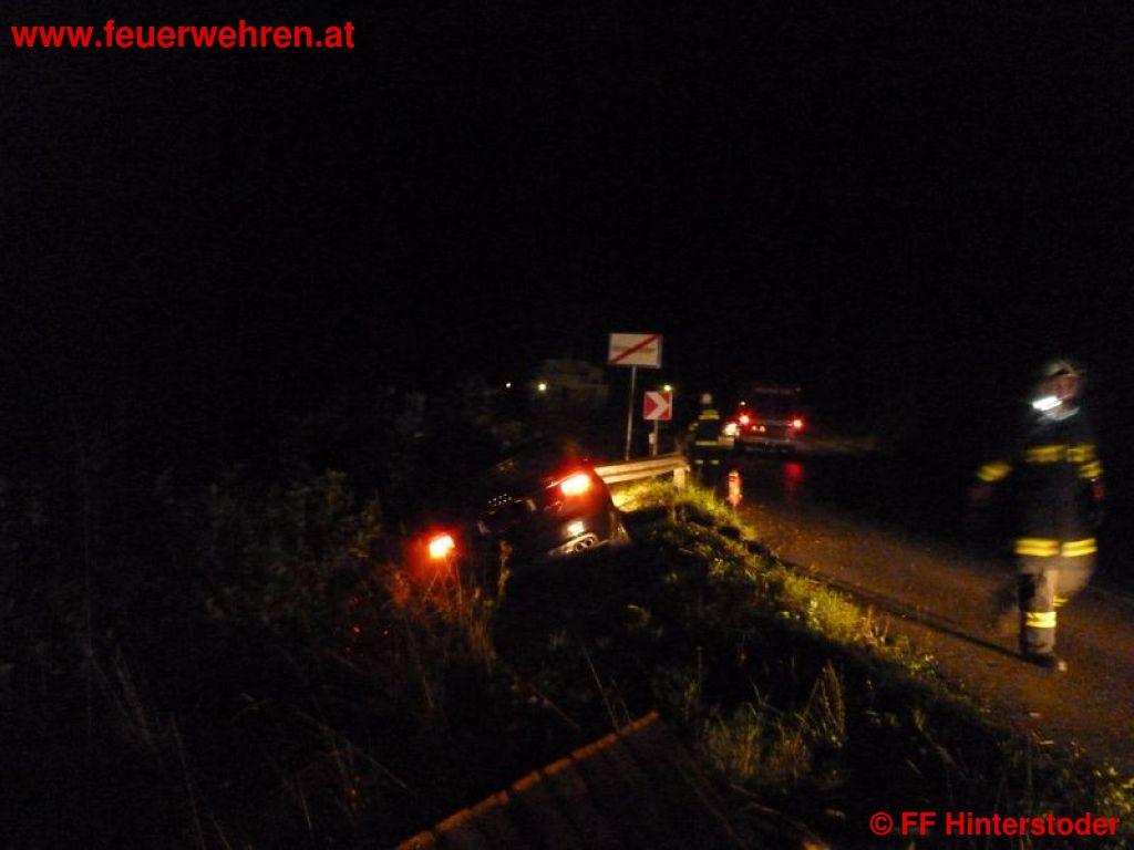 Zu Aufräumarbeiten nach einem Verkehrsunfall wurde die Feuerwehr Hinterstoder am 24.08.2013 um 00:45 Uhr von einem Kameraden telefonisch alarmiert. Ein Fahrzeuglenker war aus unbekannter Ursache von der Fahrbahn abgekommen und rammte mit voller Wucht ein Brückengeländer und die Leitschiene, welche die Fahrbahn von der Steyr trennt. Der Fahrzeuglenker blieb bei dem Aufprall unverletzt.