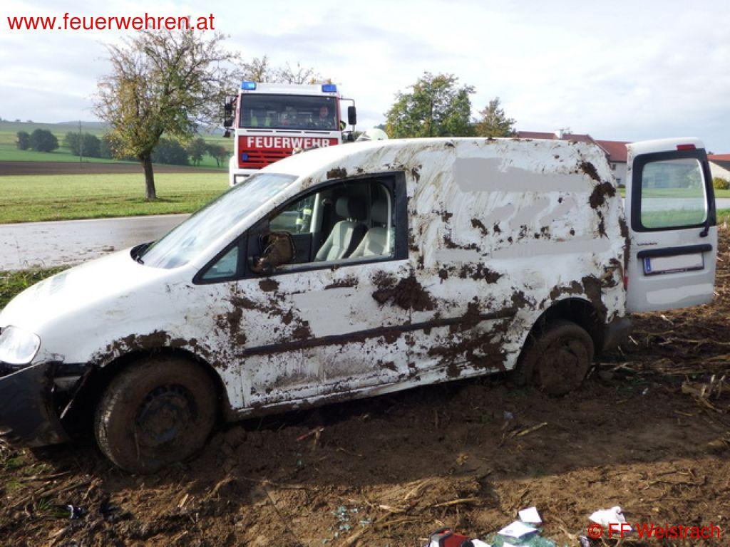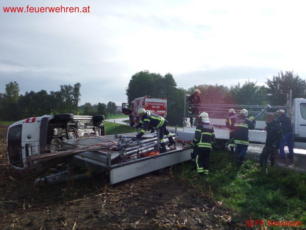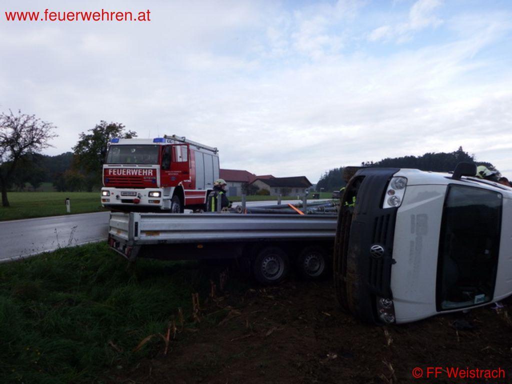 Am 10.10.2013 um 09:24 Uhr wurde die FF Weistrach zu einem Fahrzeugüberschlag auf die B 122 Straßenkilometer 19,2 gerufen. Nach 3,30 Minuten rückte bereits das erste Fahrzeug mit 5 Mann zum Einsatz aus. Wenig später folgte das Löschfahrzeug mit weiteren 4 Einsatzkräften.