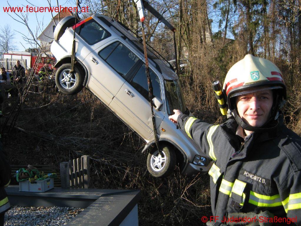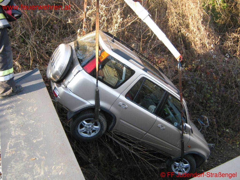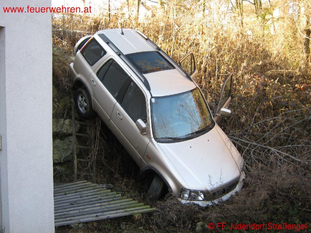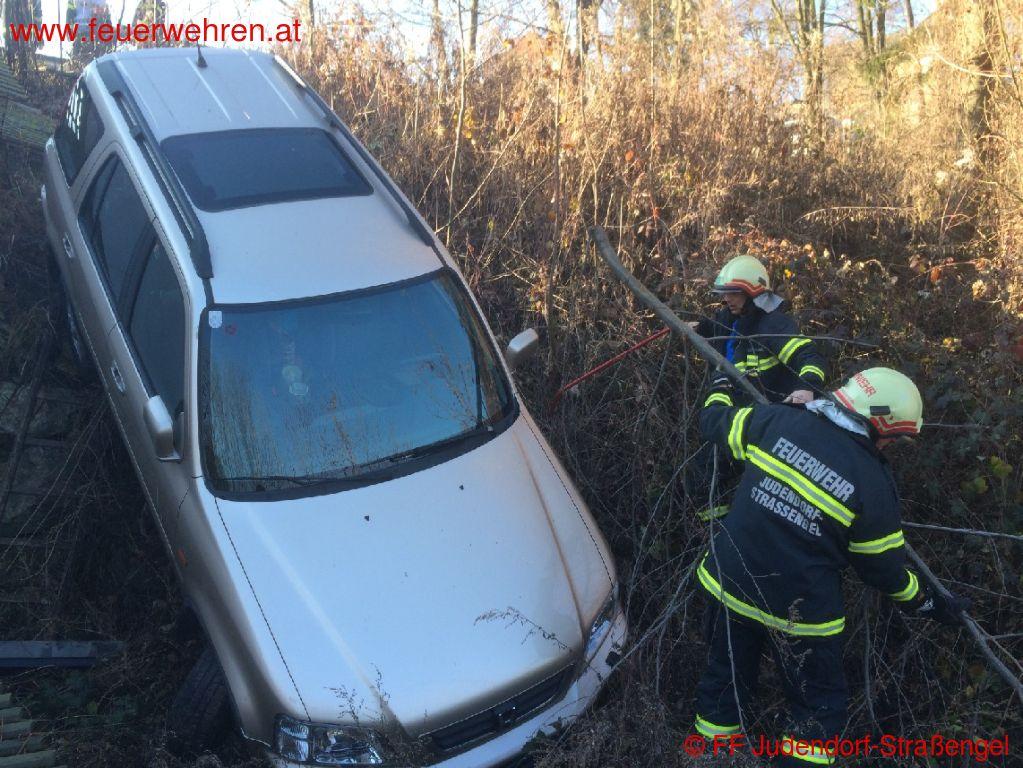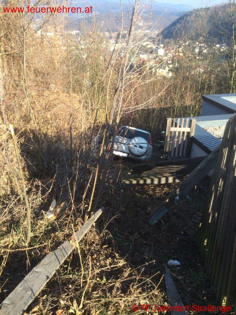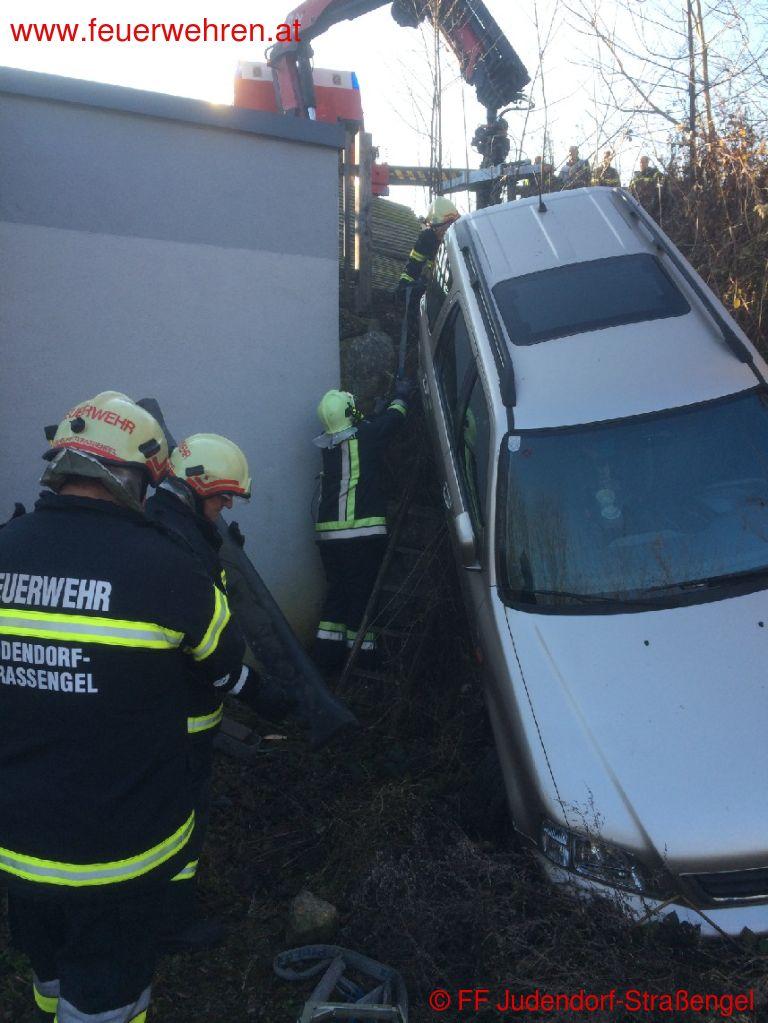 Die FF Judendorf-Straßengel rückte mit drei Fahrzeugen aus. Da vom Einsatzleiter bei einer Bergung mit der Seilwinde befürchtet wurde, dass es durch das Schleifen über den Untergrund zu Beschädigungen des verunfallten Fahrzeuges und dadurch zu einem Ölaustritt kommen könnte, veranlasste dieser die Alarmierung des SRF Gratkorn für ein Heraufheben mit dem heckseitig angebrachten Kran.
