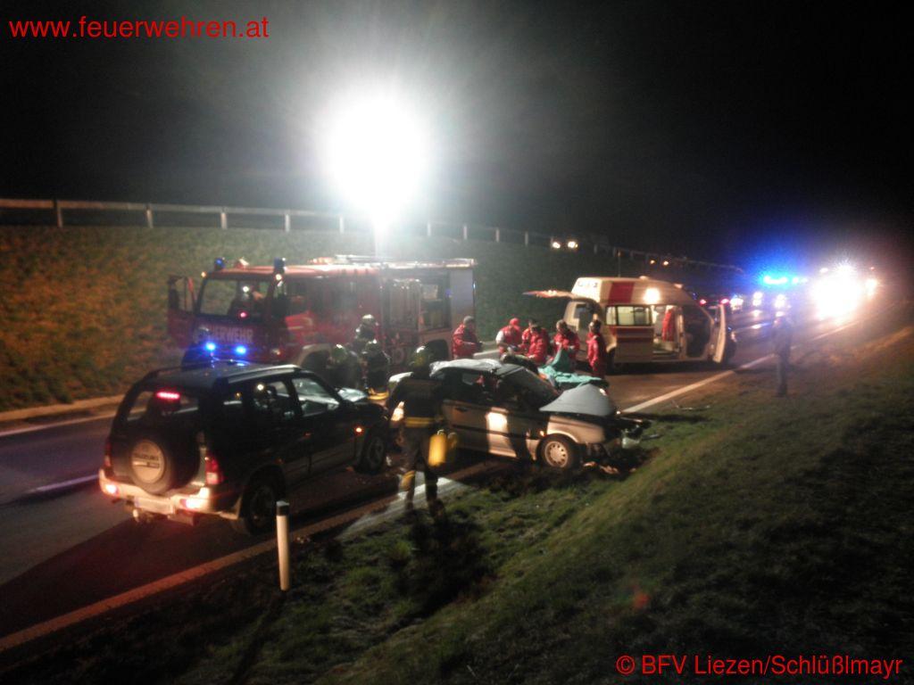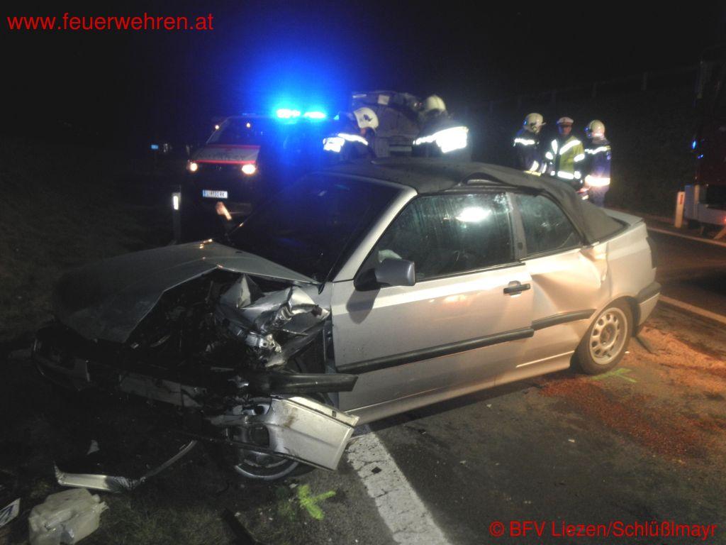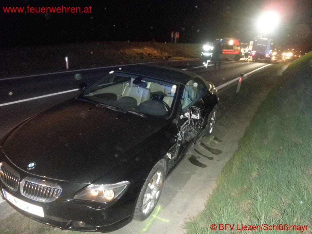 Ein Pkw überholte an einer unübersichtlichen Stelle mit kaum Überholsichtweite Richtung Liezen zwei Pkw und einen LKW, als plötzlich ein Fahrzeug entgegenkam. Durch Ausweichmanöver entstand an insgesamt drei beteiligten Pkw zum Teil Totalschaden, während der Unfallverursacher Fahrerflucht beging.