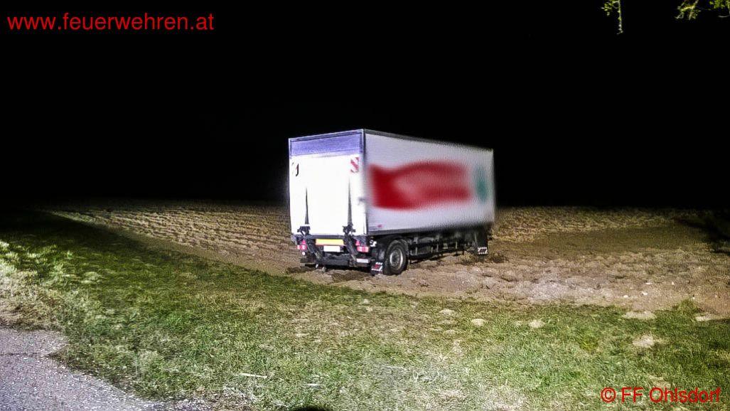 Am Einsatzort fanden die Einsatzkräfte einen LKW-Anhänger vor, welcher vom nahe gelegenen Parkplatz in ein Feld rollte. Der LKW Lenker hatte den Anhänger dort wegen Ladetätigkeiten vom Zugfahrzeug abgehängt. Dabei dürfte die Bremsanlage des Anhängers versagt haben. Nach der Ladetätigkeit bemerkte der Lenker dass der Anhänger verschwunden sei und fand diesen im nahe gelegenen Feld.