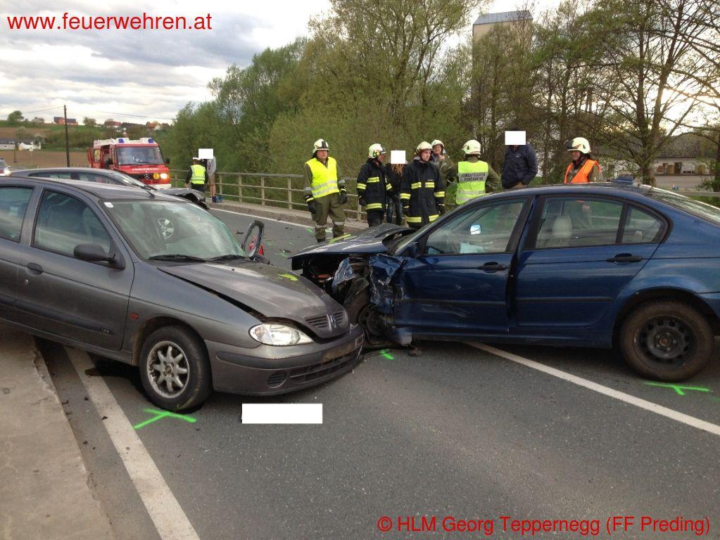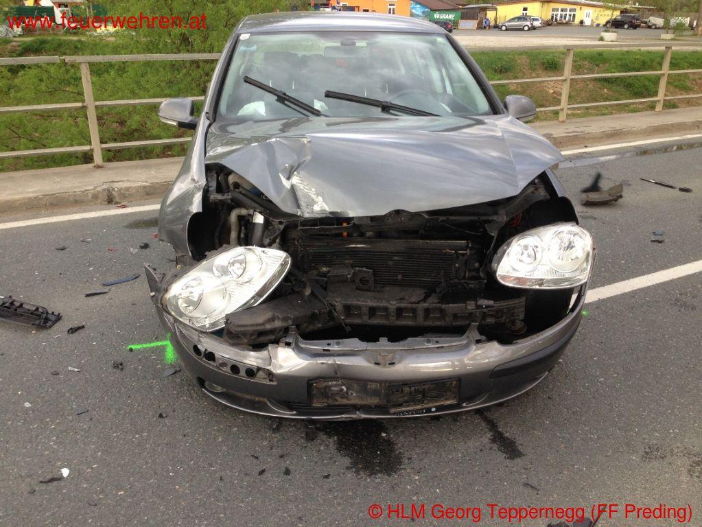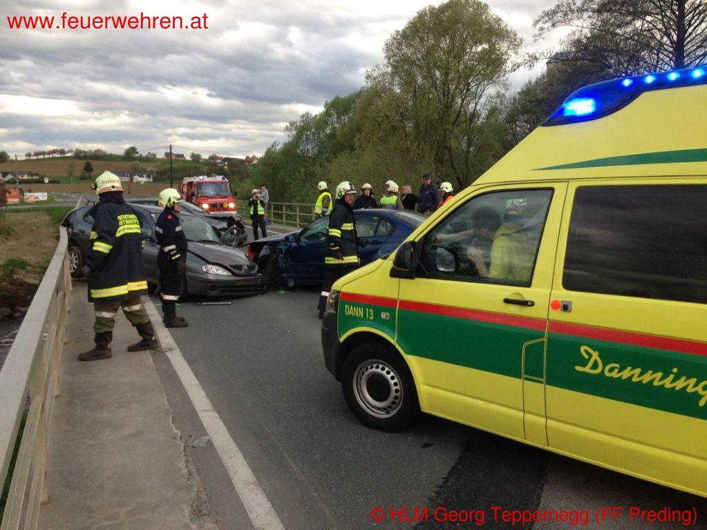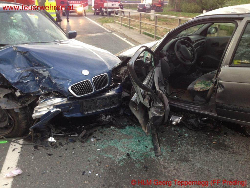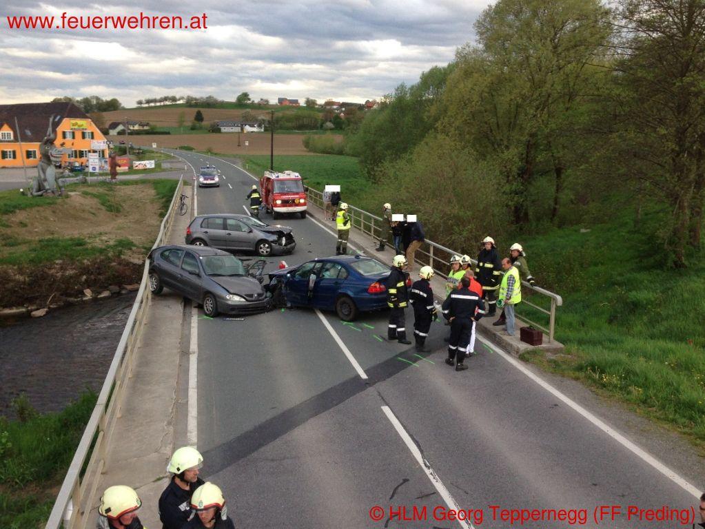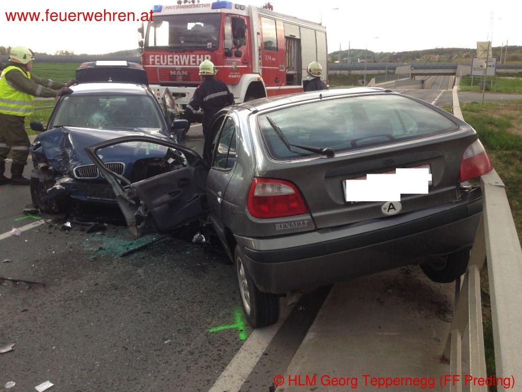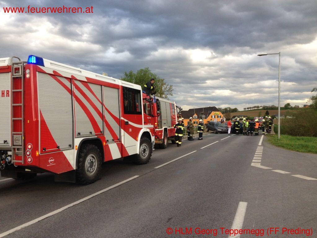 Zu einem Verkehrsunfall mit eingeklemmten Personen wurden die Feuerwehren Wettmannstätten und Preding Donnerstagnachmittag (10.04.2014) alarmiert.