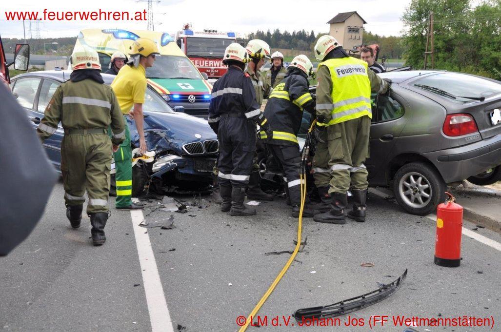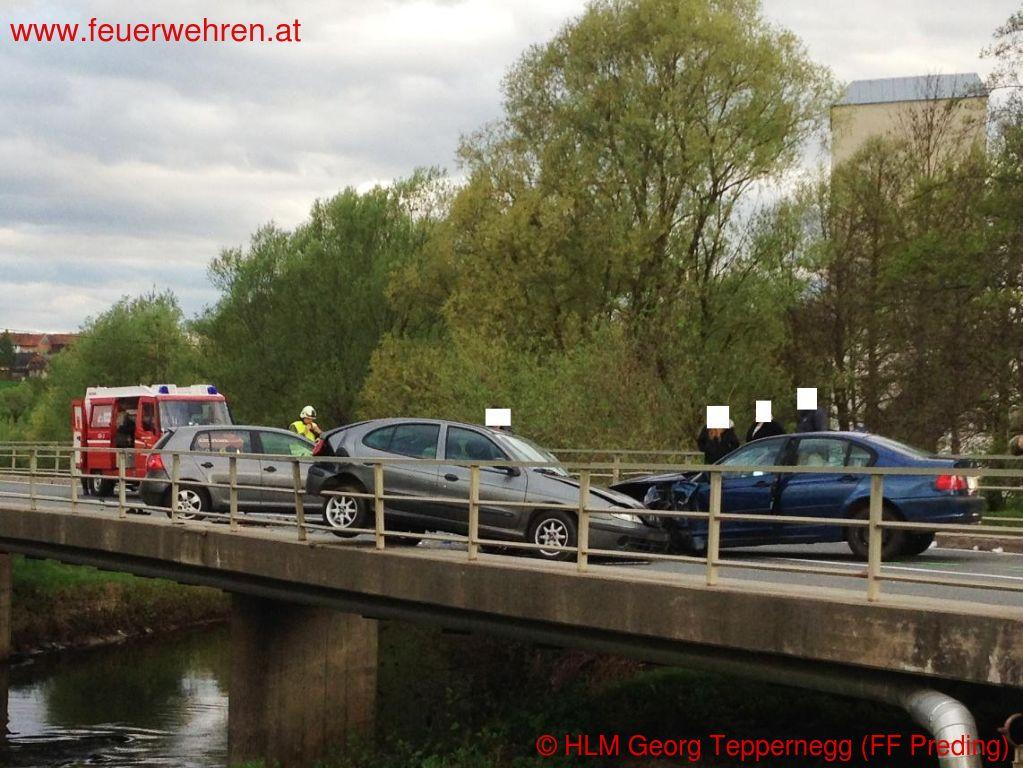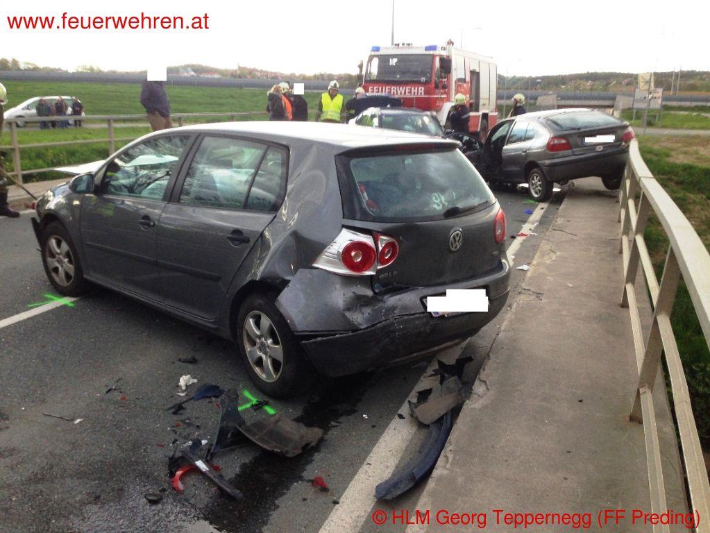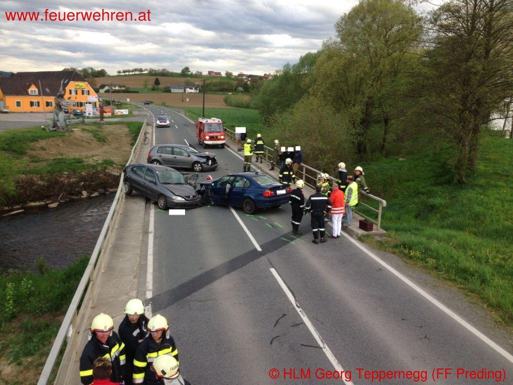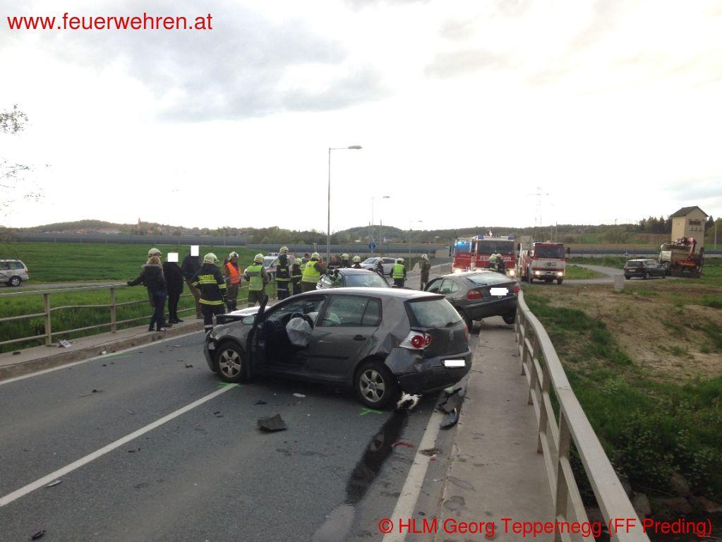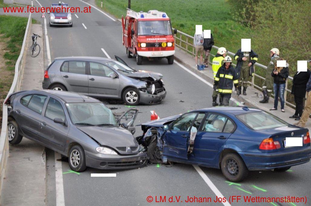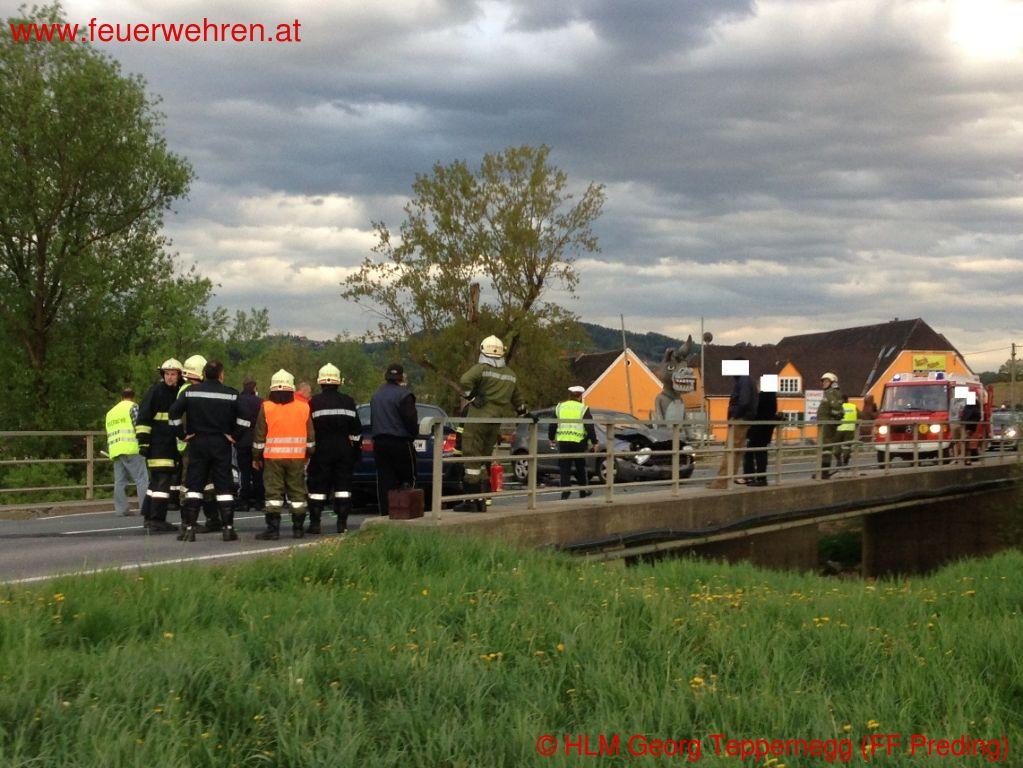 Zu einem Verkehrsunfall mit eingeklemmten Personen wurden die Feuerwehren Wettmannstätten und Preding Donnerstagnachmittag (10.04.2014) alarmiert.