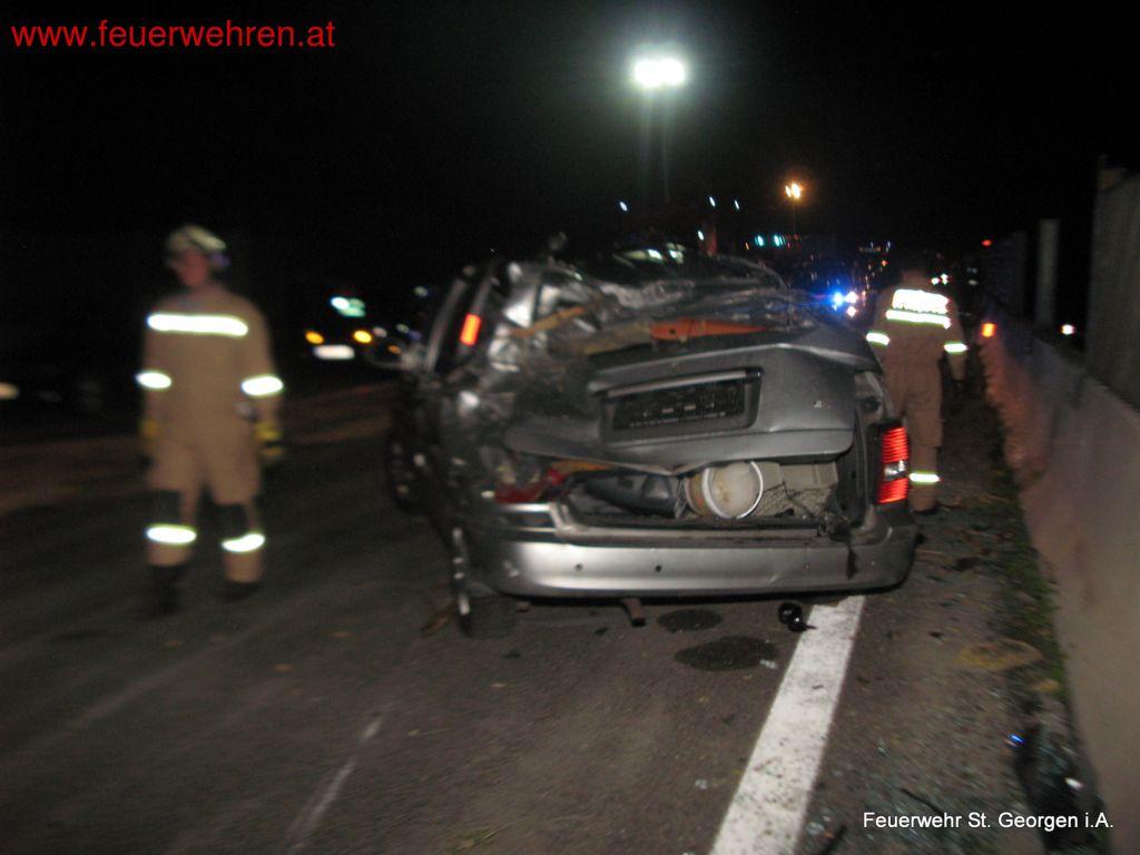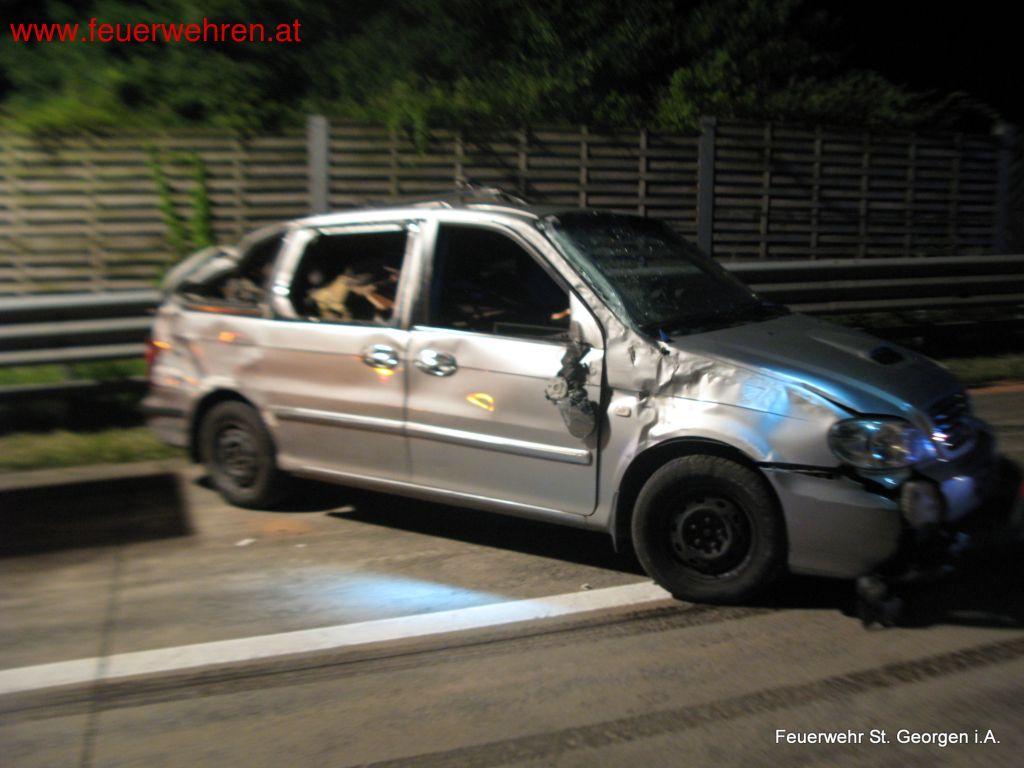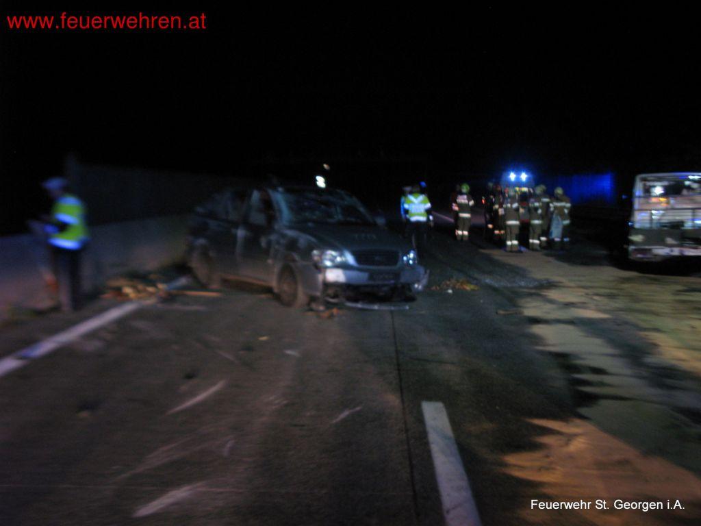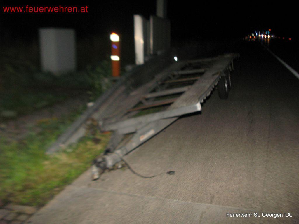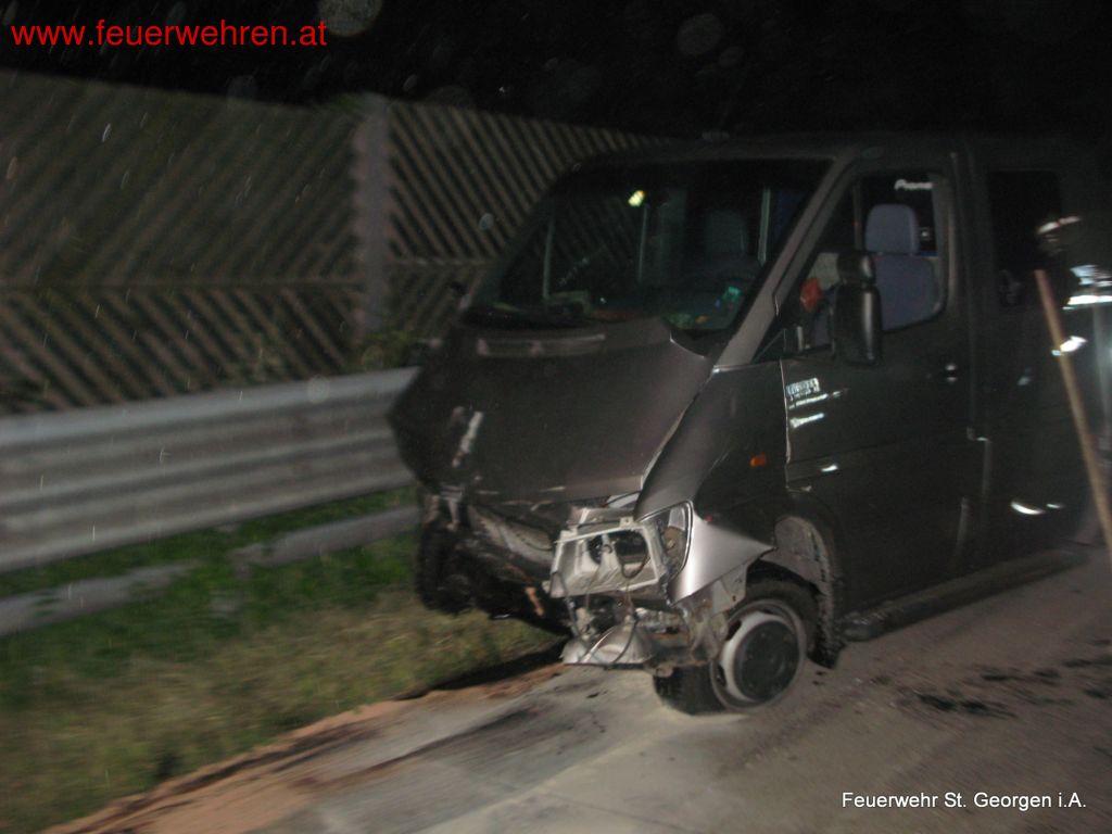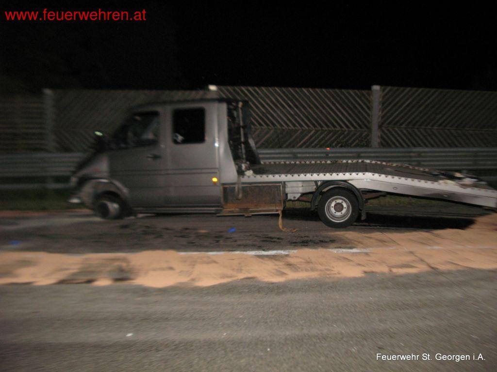 Am 13. Juli 2014 wurde die FF St. Georgen im Attergau kurz nach Mitternacht zu Aufräumarbeiten nach einem Verkehrsunfall auf die A1 – Westautobahn gerufen. Der Fahrer eines Kleintransporters inkl. Autoanhänger verlor die Kontrolle über sein Fahrzeuggespann und kollidierte mit der Betonmittelleitwand.