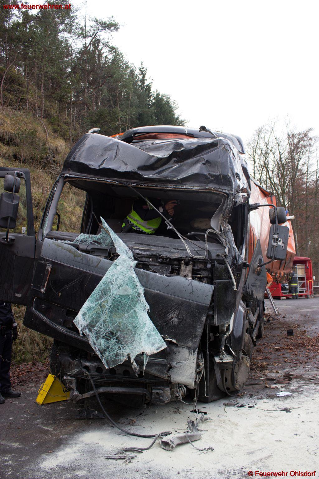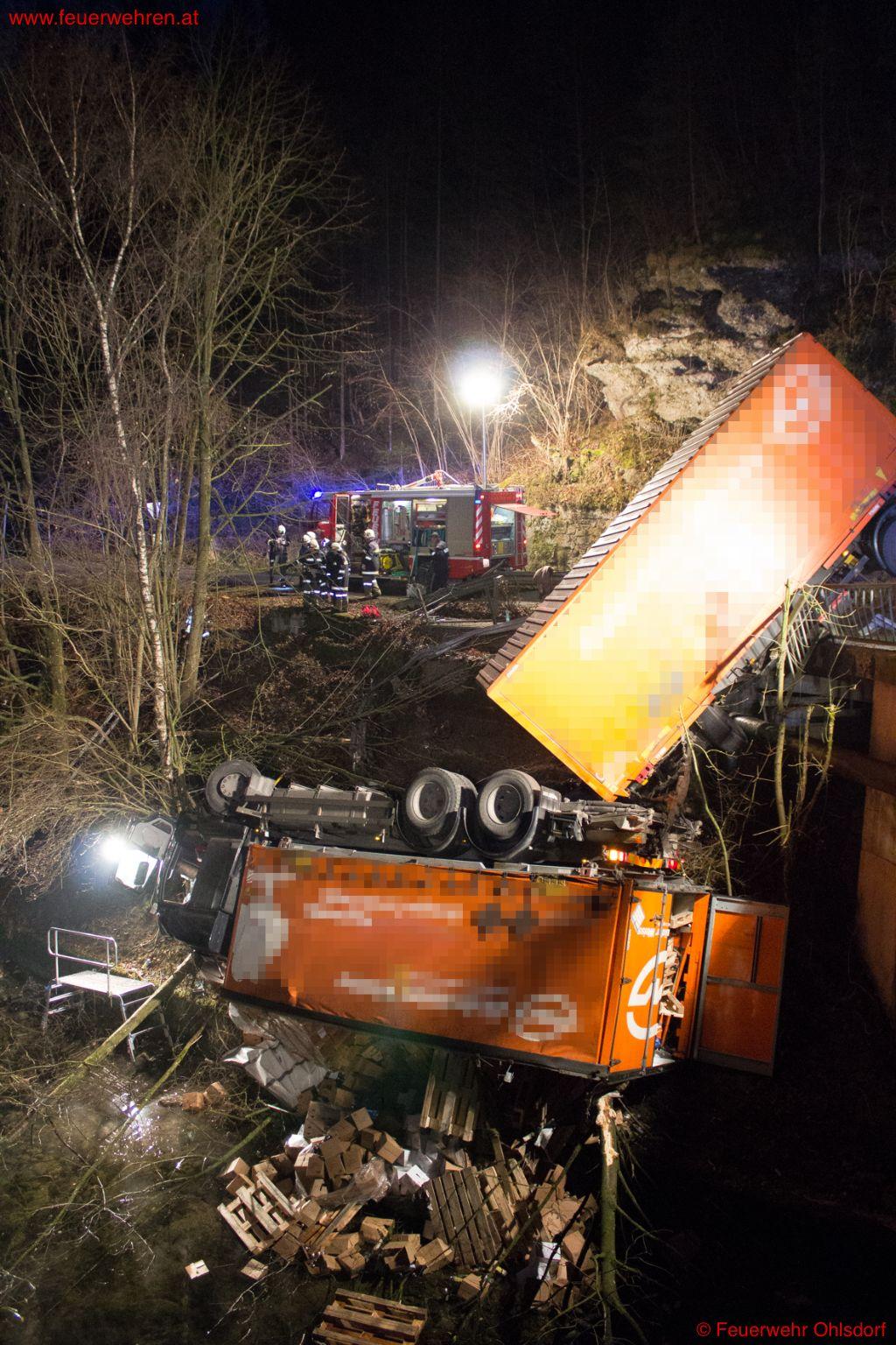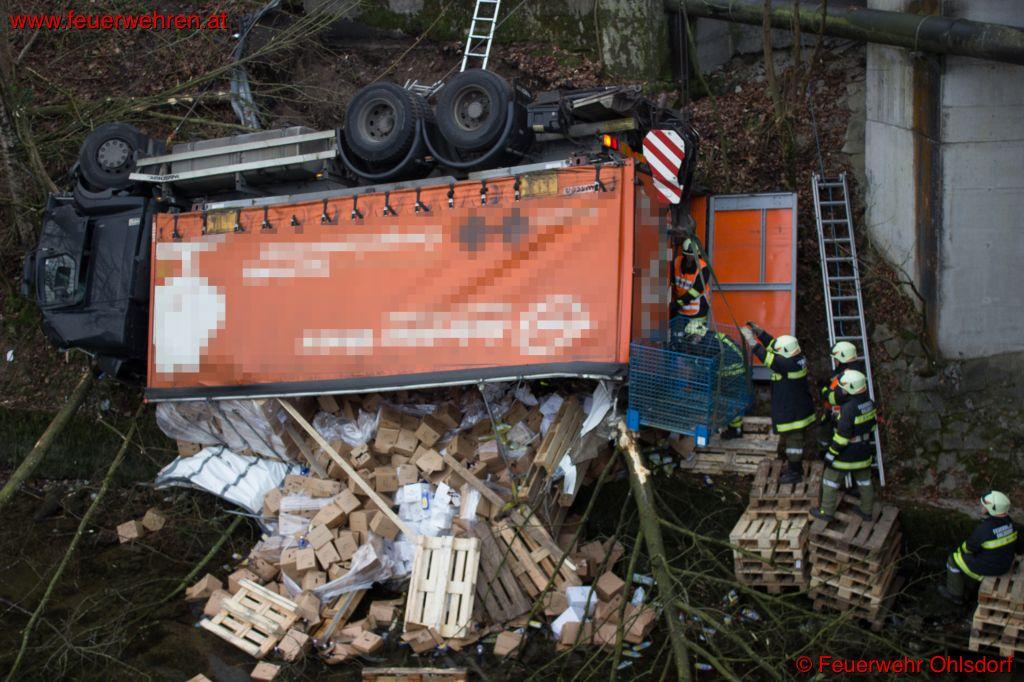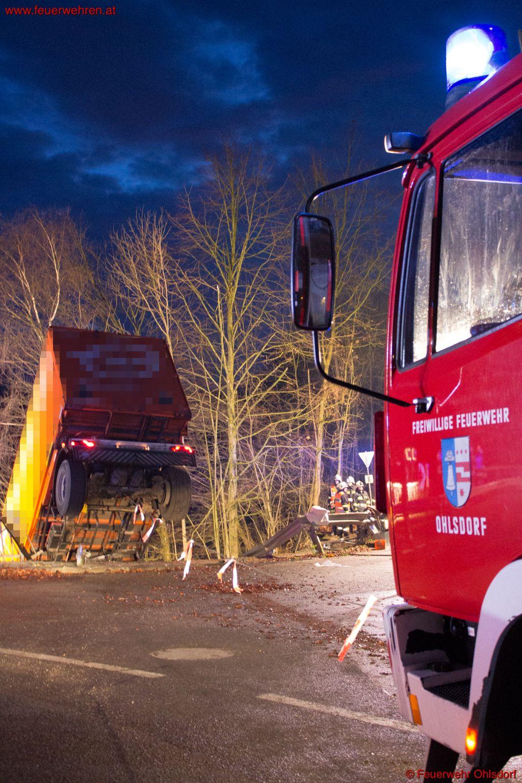 Am Montag, den 15. Dezember 2014 heulte um 05:28 Uhr in Ohlsdorf die Sirene der Feuerwehr Ohlsdorf hoch. Ein Lkw stürzte in der Ortschaft Sandhäuslberg von der Landesstraße rund 10 Meter tief in die darunter liegende Traun. Ersthelfer leisteten sofort dem Lenker Erste Hilfe. Ein weiterer fuhr nach Ohlsdorf und löste beim Gerätehaus mit den Druckknopfmelder den Alarm aus.