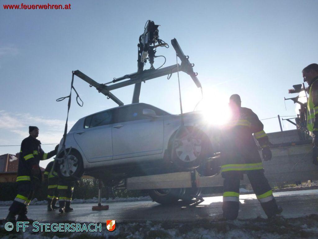 Ein Fahrzeug wurde so stark beschädigt, dass es fahruntüchtig war. Die Feuerwehr Stegersbach barg einen PKW mittels Kranfahrzeug und stellte diesen gesichert ab. Verletzt wurde niemand.
