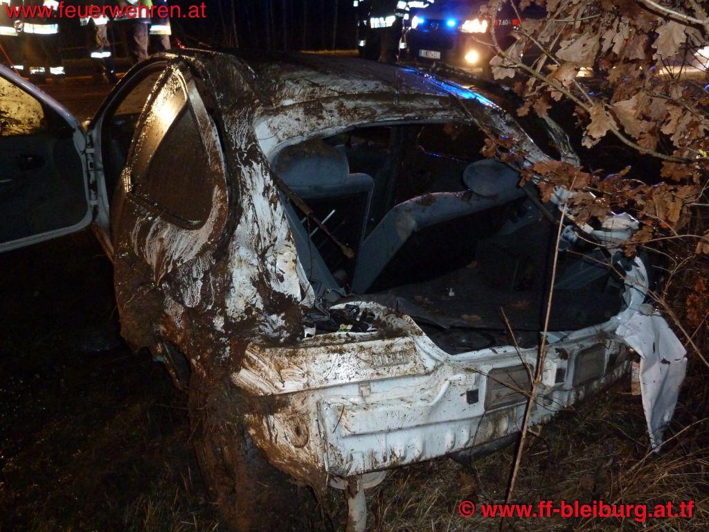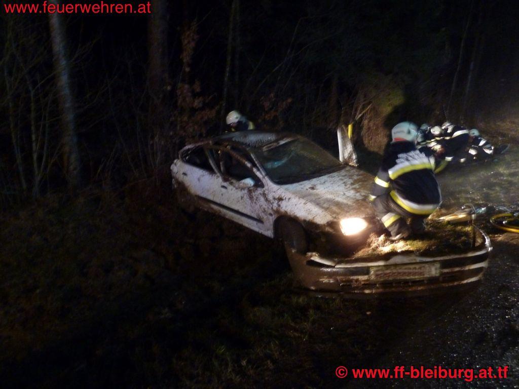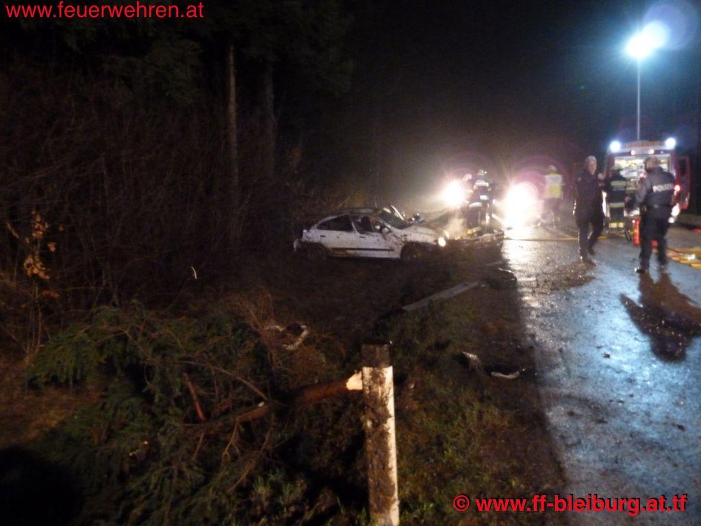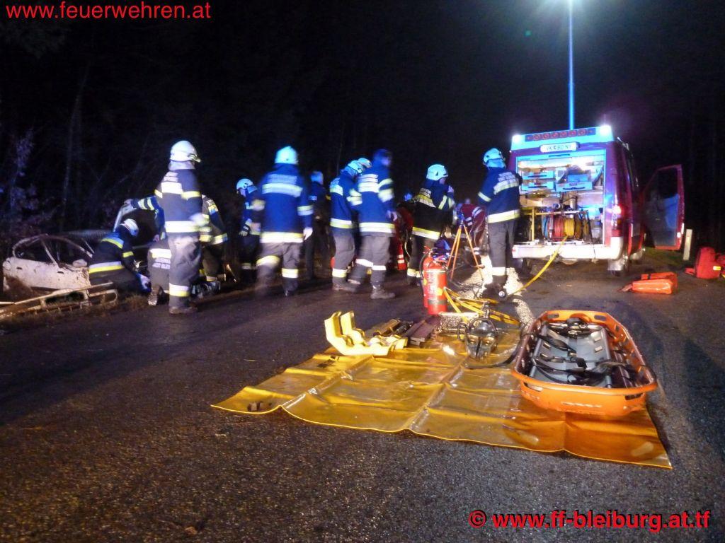 Vermerk: VU mit eingeklemmter Person, weiters Suchaktion nach einer etwaigen zweiten Person. Die Rettungsmaßnahmen beim slowenischen PKW-Lenker blieben leider ohne Erfolg.