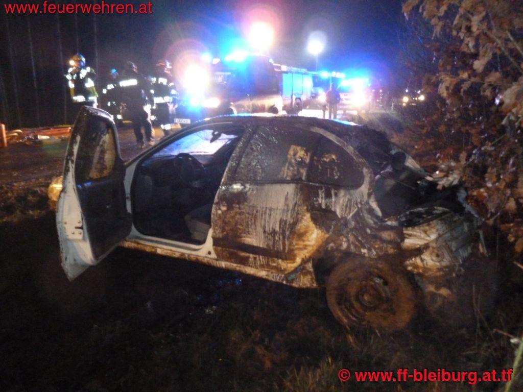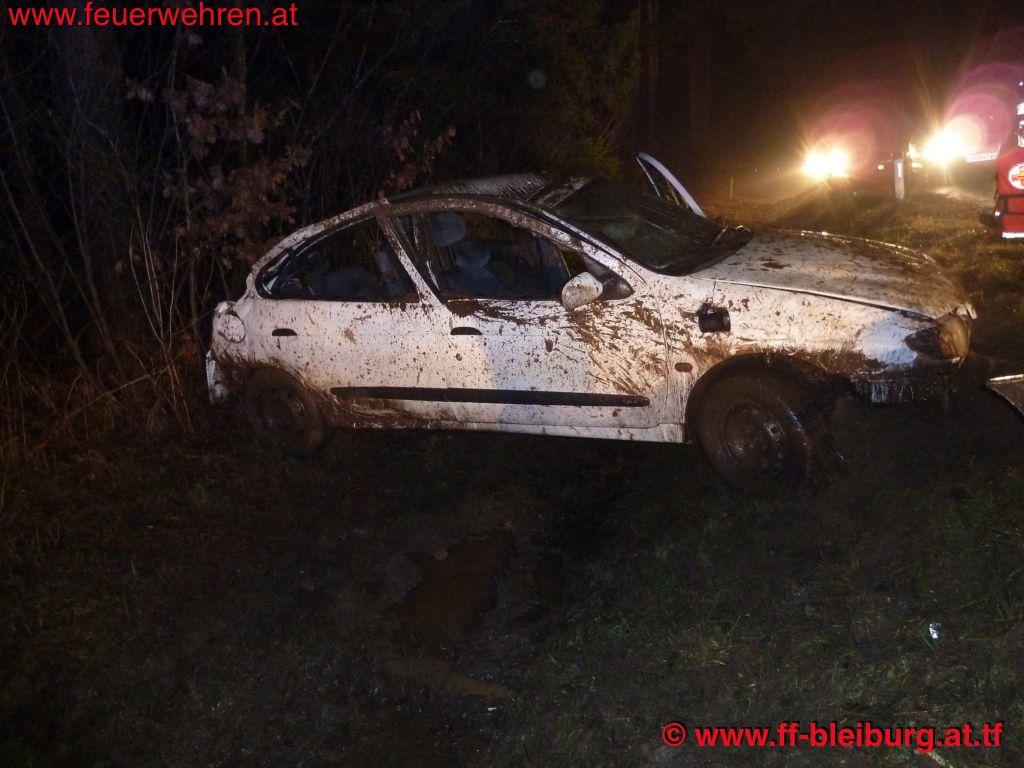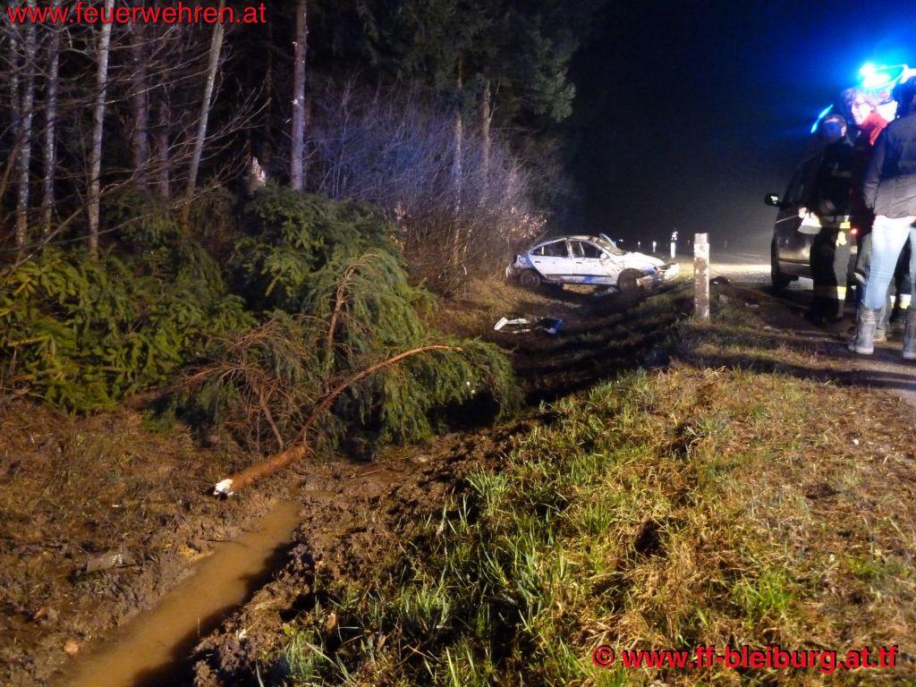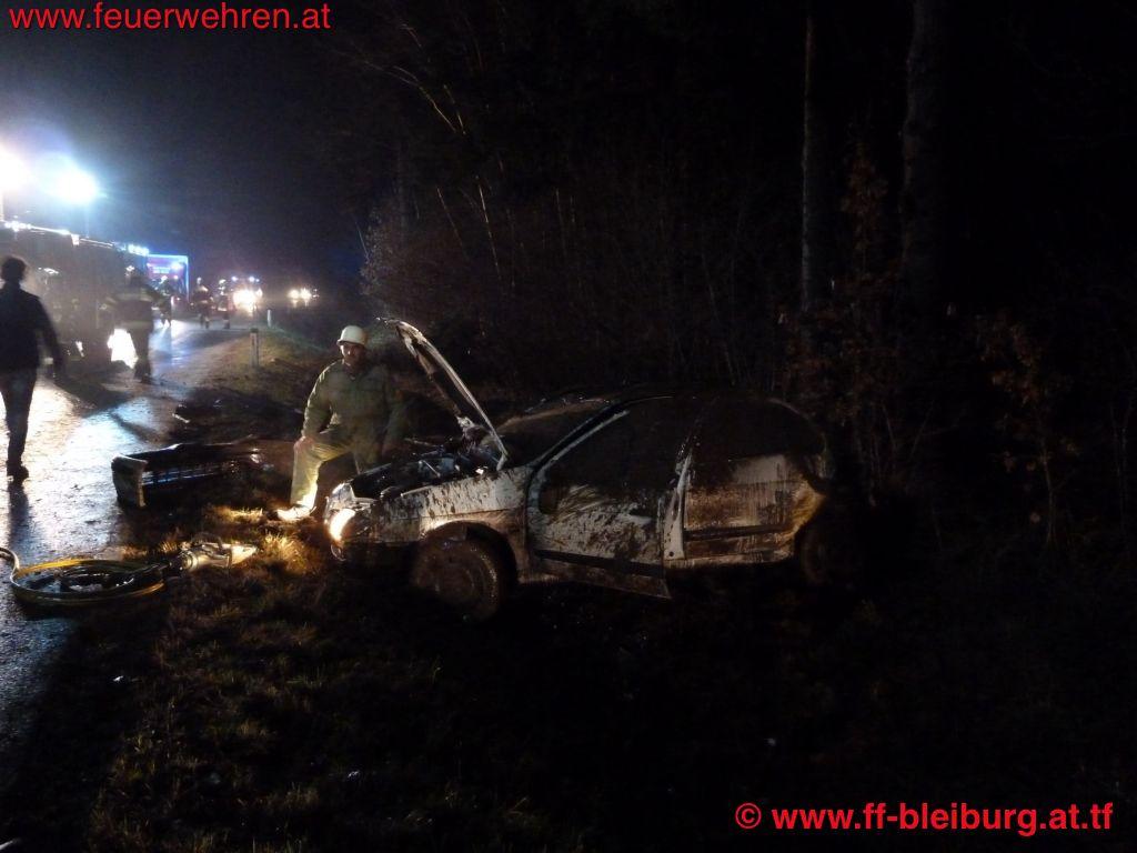 Vermerk: VU mit eingeklemmter Person, weiters Suchaktion nach einer etwaigen zweiten Person. Die Rettungsmaßnahmen beim slowenischen PKW-Lenker blieben leider ohne Erfolg.