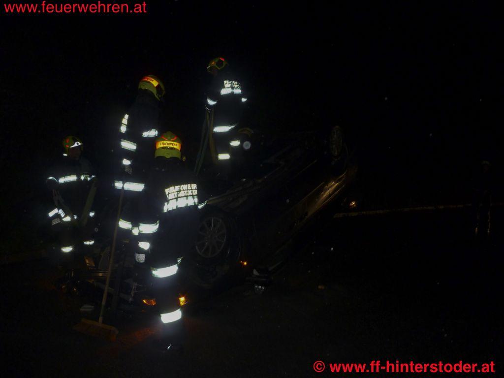 Dabei hat sich das Auto überschlagen und ist auf dem Dach zum Liegen gekommen. Der Lenker konnte das Fahrzeug unverletzt verlassen und wurde vom Rettungsdienst betreut. Um 02:16 Uhr wurde die Feuerwehr Hinterstoder von der Landeswarnzentrale zu Aufräumarbeiten nach einem Verkehrsunfall alarmiert.