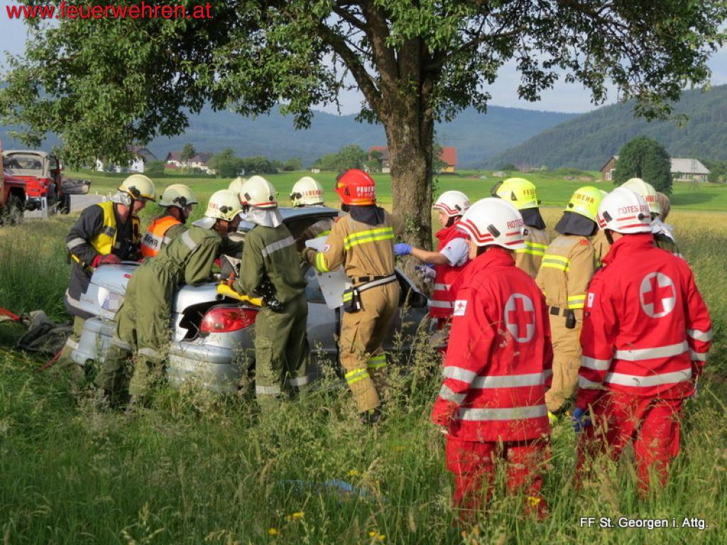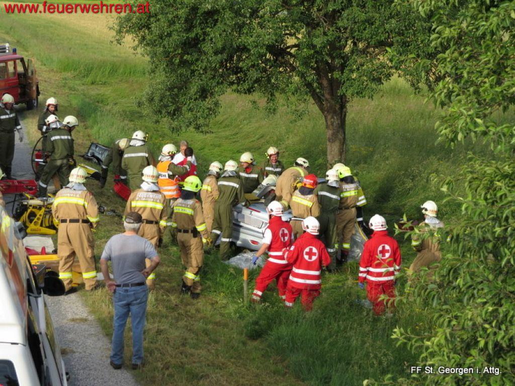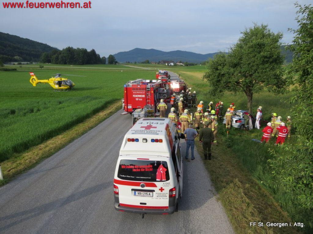 Zu einem Verkehrsunfall mit eingeklemmter Person wurde die Feuerwehr St. Georgen im Attergau am 13.06.2015 um kurz vor sieben Uhr morgens auf die Oberwanger-Landesstraße alarmiert.