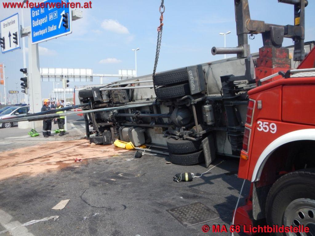 Der umgekippte Lkw wurde mit Hilfe des Bergekrans des Abschleppfahrzeuges wieder aufgerichtet und beide Pkws ebenfalls von der Unfallstelle entfernt.