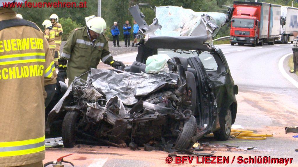 Auf der Ennstalbundesstraße zwischen Schladming und Pichl ereignete sich eine Frontalkollision zwischen einem LKW und einem PKW. Die 3 PKW-Insassen waren auf der Stelle tot, der LKW stürzte über eine Böschung und wurde von einem Gleiskörper der ÖBB gestoppt. Der Lenker des Schwerfahrzeuges wurde leicht verletzt und wurde vom Roten Kreuz ins Krankenhaus eingeliefert.